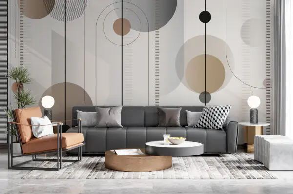 Ταπετσαρίες Γκρι και λευκό φόντο με κύκλους και γραμμές