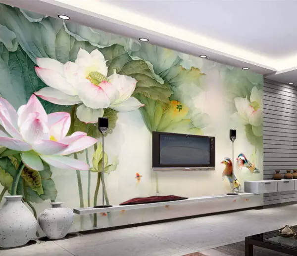 Ταπετσαρίες Ζωγραφική των λουλουδιών και των βουνών