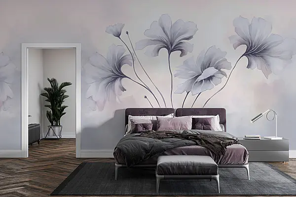Ταπετσαρίες Ζωγραφική των λουλουδιών σε μια λευκή επιφάνεια
