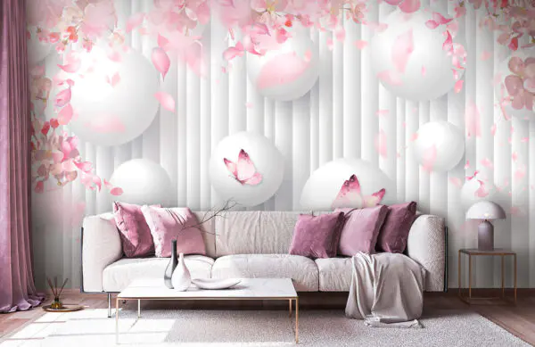 Ταπετσαρίες Ομάδα από ροζ λουλούδια και πράσινα φύλλα