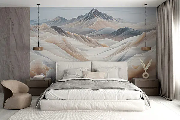 Ταπετσαρίες Τοπίο με βουνά με ομίχλη και δέντρα