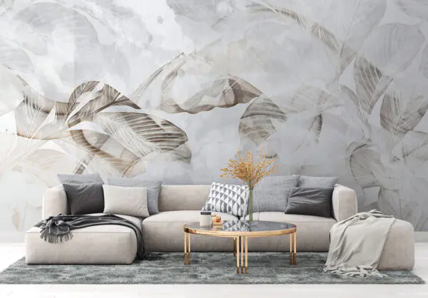 Ταπετσαρίες Αφηρημένα φύλλα σε κλίμακα του γκρι