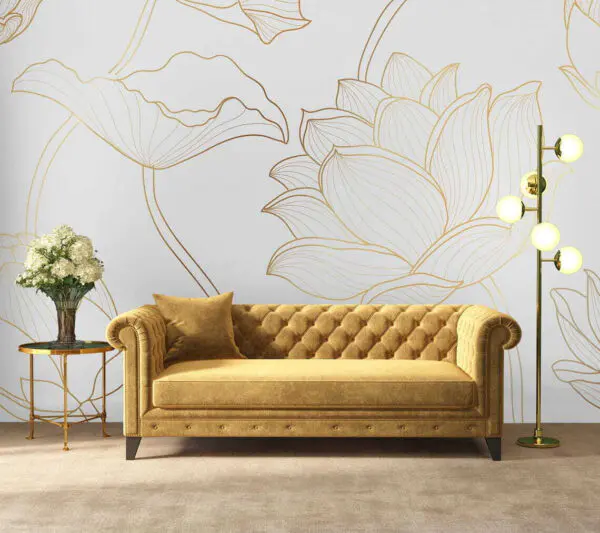 Ταπετσαρίες Κομψό σχέδιο με άνθη και φύλλα λωτού