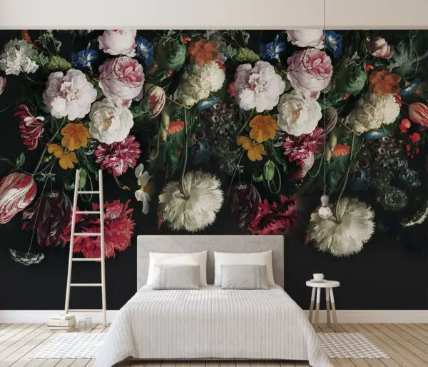 Ταπετσαρίες Ζωντανό φλοράλ μοτίβο σε μαύρο φόντο