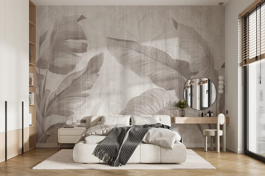 Φανταστείτε να μπαίνετε σε έναν χώρο που μοιάζει με έναν γαλήνιο περίπατο σε ένα ονειρικό δάσος. Αυτή η κομψή μονόχρωμη τοιχογραφία φύλλων προσθέτει ένα άγγιγμα της ηρεμίας της φύσης στους τοίχους σας. Τα ρέοντα μοτίβα δημιουργούν έναν απαλό χορό από φύλλα που μοιάζουν σχεδόν ζωντανά, ψιθυρίζοντας μυστικά της υπαίθρου. Είναι ιδανική για μια ζεστή γωνιά ανάγνωσης ή ένα ήσυχο καταφύγιο στο υπνοδωμάτιο. Απλά φανταστείτε να κουλουριάζεστε με ένα καλό βιβλίο, περιτριγυρισμένοι από αυτή την ήρεμη ατμόσφαιρα. Είναι σαν να παίρνετε μια αγκαλιά από τη φύση – ακόμη και σε εσωτερικούς χώρους. Ποιος ήξερε ότι ένας τοίχος θα μπορούσε να είναι τόσο αναζωογονητικός; Ιδανική για όσους εκτιμούν τις μικρές λεπτομέρειες στη ζωή, αυτή η τοιχογραφία προσδίδει μια αβίαστη γοητεία που μπορεί να φωτίσει κάθε δωμάτιο.