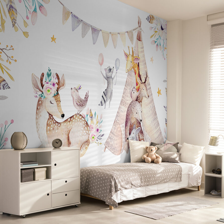 Ιδανική για το δωμάτιο της κόρης ή για κάθε παιδικό χώρο, μοιάζει με αγκαλιά από τη φύση! Φανταστείτε το μικρό σας να ξυπνάει και να χαιρετάει το ρακούν κάθε πρωί… ή να λέει παραμύθια για ύπνο κάτω από τα άγρυπνα μάτια της καμηλοπάρδαλης και του ελαφιού. Είναι σαν να έχετε ένα κομμάτι από το φανταστικό δάσος στο σπίτι σας – εξαιρετικά άνετο και συγκινητικό. Τα απαλά χρώματα συνδυάζονται άψογα με τις περισσότερες διακοσμήσεις, δημιουργώντας μια γαλήνια αλλά παιχνιδιάρικη ατμόσφαιρα. Απλά αξιολάτρευτο!