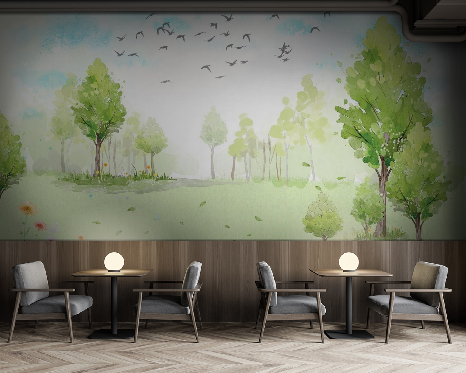Μεταμορφώστε οποιονδήποτε χώρο σε ένα γαλήνιο καταφύγιο με αυτή τη μαγευτική ταπετσαρία τοίχου που απεικονίζει ένα καταπράσινο λιβάδι γεμάτο δέντρα και πουλιά που πετούν στον ουρανό. Είναι σαν να φέρνετε μια πινελιά φύσης στο εσωτερικό του σπιτιού σας, χωρίς τη λάσπη και τα έντομα. Φανταστείτε να πίνετε τον καφέ σας ενώ χαζεύετε τις απαλές αποχρώσεις της ακουαρέλας – είναι χαλαρωτικό, αναζωογονητικό και ίσως ακόμη και λίγο φανταστικό. Ιδανική για ένα άνετο σαλόνι ή για το γραφείο του σπιτιού που χρειάζεται μια ανανέωση, αυτή η ταπετσαρία δημιουργεί μια αέρινη ατμόσφαιρα, κάνοντάς σας να νιώθετε σαν να χαλαρώνετε σε ένα ηλιόλουστο ξέφωτο. Επιπλέον, ποιος δεν θέλει να νιώθει σαν να βρίσκεται σε ένα μόνιμο πικνίκ;