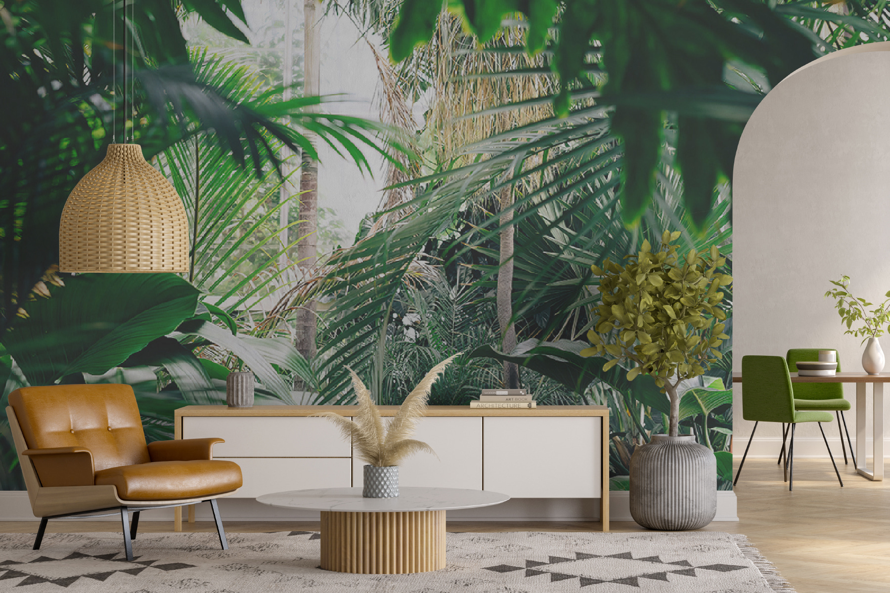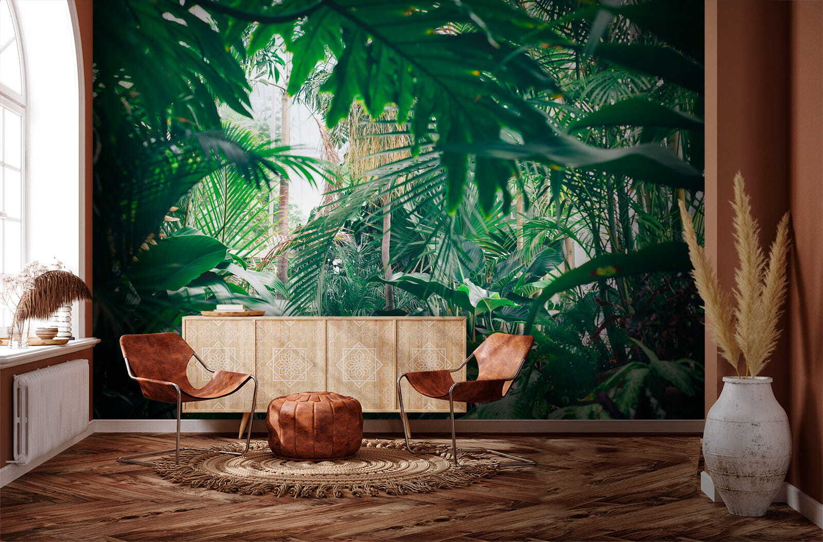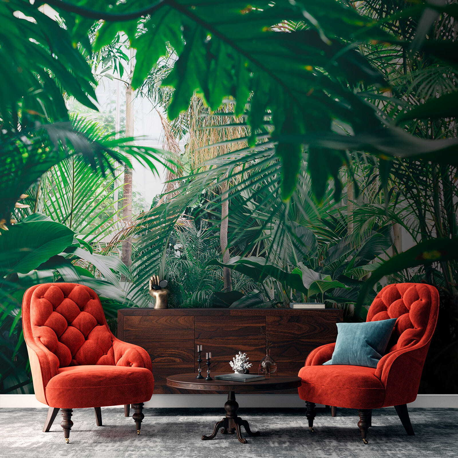 Μεταμορφώστε οποιοδήποτε δωμάτιο σε έναν τροπικό παράδεισο με αυτή την εκπληκτική τοιχογραφία τοίχου με πλούσια φυλλώματα ζούγκλας που λούζονται στο φως του ήλιου. Φανταστείτε να μπαίνετε στο χώρο σας και να αισθάνεστε σαν να έχετε μπει κατευθείαν σε μια γαλήνια ζούγκλα, όπου ο αέρας είναι φρέσκος και το φως του ήλιου φιλτράρει τα φύλλα ακριβώς όπως πρέπει. Είναι σαν να φέρνετε ένα κομμάτι της φύσης στους εσωτερικούς χώρους χωρίς το σπρέι για τα έντομα! Ιδανικό για όσους λαχταρούν λίγο πράσινο αλλά δεν έχουν τον πράσινο αντίχειρα. Οι φίλοι θα νομίζουν ότι βρήκατε το απόλυτο σημείο διακοπών ακριβώς στο σπίτι σας. Απλά φανταστείτε να αράζετε με ένα καλό βιβλίο ή να απολαμβάνετε ένα φλιτζάνι καφέ, περιτριγυρισμένοι από αυτή τη ζωντανή απόδραση. Δεν είναι απλώς μια τοιχογραφία, είναι μια ανάσα φρέσκου αέρα για τους τοίχους σας!