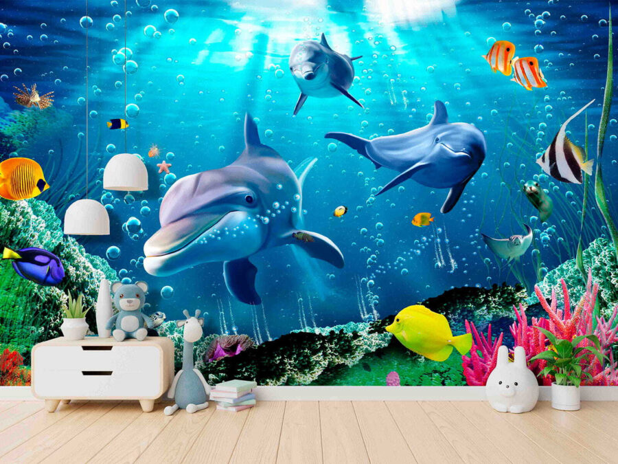 Φανταστείτε να βυθίζεστε σε έναν ζωντανό υποβρύχιο κόσμο χωρίς καν να βγείτε από το δωμάτιό σας – ακούγεται εκπληκτικό, σωστά; Αυτή η τοιχογραφία “Dolphin swimming in water” είναι σαν μια έκρηξη ωκεάνιας μαγείας για τους τοίχους σας. Δελφίνια, πολύχρωμα ψάρια, κοράλλια – είναι σαν μια μικρή περιπέτεια ακριβώς στο χώρο σας! Ιδανική για παιδικά δωμάτια ή για οποιονδήποτε έχει νεανική καρδιά, φέρνει μια βουτιά χαράς και θαυμασμού. Το τρισδιάστατο εφέ σας κάνει να αισθάνεστε σαν να πρόκειται σχεδόν να βρέξετε τα πόδια σας… και ειλικρινά, ποιος δεν θα ήθελε να κολυμπάει με δελφίνια κάθε μέρα; Βυθιστείτε και αφήστε τη φαντασία σας να οργιάσει!