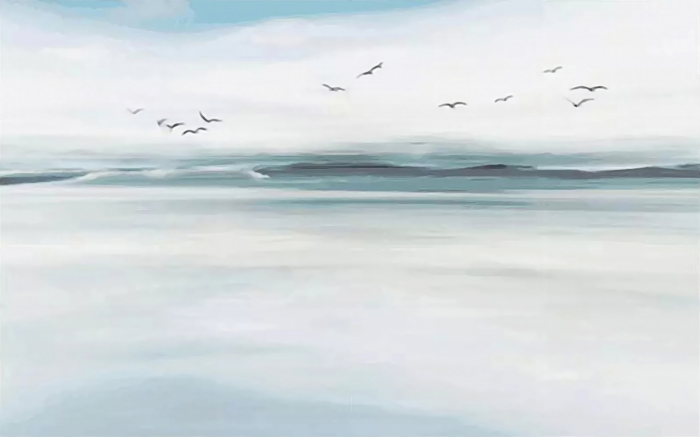 Φανταστείτε το χώρο σας να μεταμορφώνεται από αυτή την ονειρική τοιχογραφία – σαν μια απαλή υδατογραφία που ζωντανεύει! Φανταστείτε “Πουλιά που πετούν πάνω από ένα υδάτινο σώμα”, γεμίζοντας το δωμάτιό σας με γαλήνη. Είναι σαν να έχετε ένα παραθαλάσσιο καταφύγιο στο σπίτι σας, χωρίς την άμμο στα παπούτσια σας… ή τους γλάρους να κλέβουν τα σνακ σας!