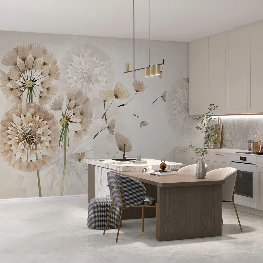 Φανταστείτε να μπαίνετε σε ένα δωμάτιο και να αισθάνεστε αμέσως ένα αεράκι ηρεμίας… Αυτό κάνει αυτή η τοιχογραφία. “Delicate dandelions drifting with breeze” αποτυπώνει εκείνες τις στιγμές όπου ο χρόνος μοιάζει να αιωρείται μακριά. Ιδανική για το δωμάτιο ενός παιδιού ή το καταφύγιο ενός εφήβου, αυτή η τοιχογραφία προσθέτει μια πινελιά ιδιοτροπίας και θαυμασμού σε κάθε χώρο. Και αυτοί οι γήινοι τόνοι; Είναι σαν μια οπτική αγκαλιά, ζεστή και φιλόξενη. Ταιριάζει τόσο άνετα είτε πρόκειται για μια γωνιά του παιδικού δωματίου είτε για τη ζώνη χαλάρωσης ενός νεαρού άνδρα. Μπορείτε σχεδόν να νιώσετε τους απαλούς ψιθύρους της φύσης με κάθε ματιά… σαν ένα όνειρο της ημέρας ζωγραφισμένο στον τοίχο σας!
