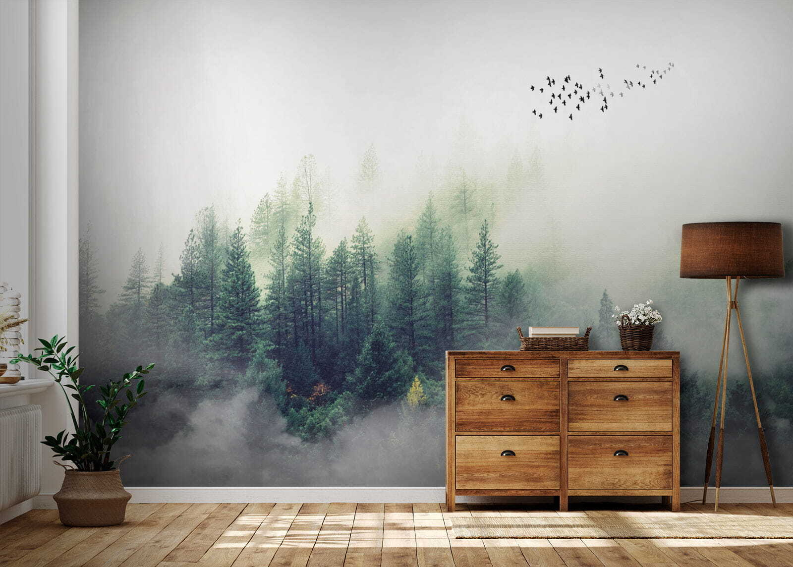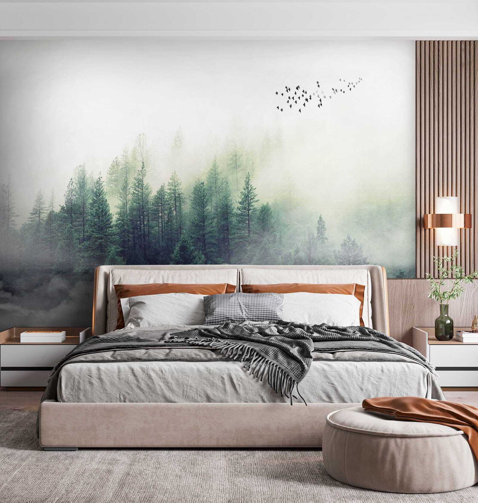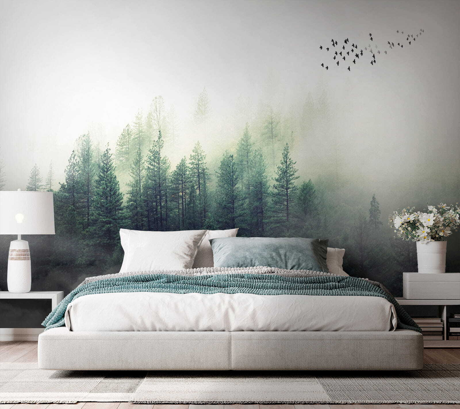 Φανταστείτε να ατενίζετε ένα ομιχλώδες δάσος κάθε πρωί – ω, η ηρεμία! Αυτή η τοιχογραφία τοίχου, “Θολή εικόνα του προσώπου ενός ατόμου”, είναι σαν να φέρνετε μια ζεστή ατμόσφαιρα καμπίνας κατευθείαν στο σαλόνι σας. Το δάσος μοιάζει τόσο μαγικό, σχεδόν σαν να μπορείτε να περπατήσετε μέσα στο γαλήνιο πράσινο και να χαθείτε στη φύση. Επιπλέον, αυτά τα πουλιά που πετούν στο βάθος προσθέτουν μια πινελιά ιδιοτροπίας.