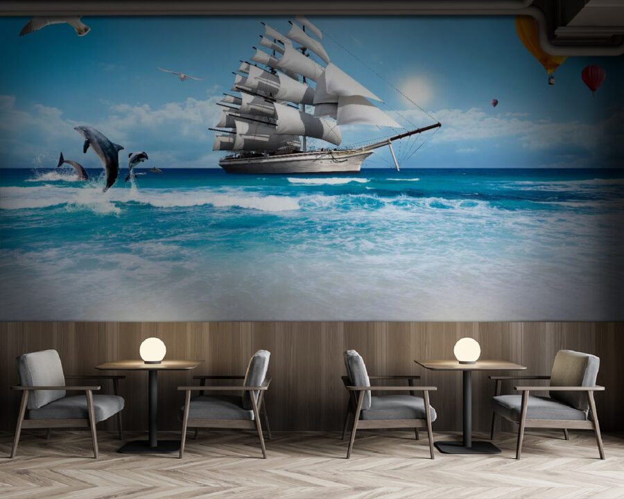 Φωτίστε ένα δωμάτιο με τη μαγευτική ατμόσφαιρα αυτής της τοιχογραφίας με τα κόκκινα αερόστατα που χορεύουν στον ουρανό! Φανταστείτε να μπαίνετε στο χώρο σας και να σας υποδέχεται μια βουτιά χρώματος και ιδιοτροπίας. Είναι σαν να έχετε μια μίνι-διακοπή κάθε μέρα, ακριβώς στον τοίχο σας. Ιδανικό για όποιον ονειρεύεται να πετάξει ψηλά και να αγκαλιάσει την περιπέτεια. Φανταστείτε να πίνετε τον πρωινό σας καφέ, ενώ η γαλήνια ομορφιά μιας παραθαλάσσιας ατμόσφαιρας αιχμαλωτίζει την καρδιά σας. Και ας είμαστε ειλικρινείς – σε ποιον δεν θα άρεσε ένας ιδιόρρυθμος γλάρος ή ένα παιχνιδιάρικο δελφίνι να κάνουν την εμφάνισή τους σε αυτή την απολαυστική σκηνή; Είναι εγγυημένο ότι θα προκαλέσει χαρά και θα πυροδοτήσει τη φαντασία. Οι τοίχοι σας δεν θα φαίνονται ποτέ ξανά άχαροι!