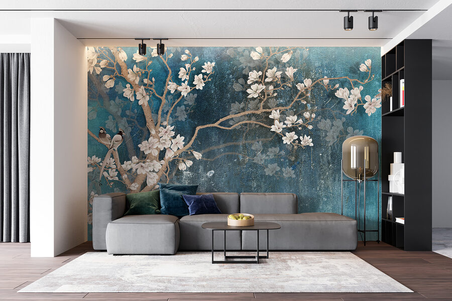 Ονειρευτήκατε ποτέ να φέρετε ένα άγγιγμα από την ομορφιά της φύσης στο εσωτερικό σας; Αυτή η τοιχογραφία “Λευκό λουλούδι σε μπλε φόντο” είναι σαν μια ανάσα φρέσκου αέρα για το χώρο σας! Φανταστείτε λεπτεπίλεπτα λευκά άνθη να πέφτουν καταρράκτες πάνω σε ένα ονειρικό μπλε φόντο, με γοητευτικά πουλιά να κάθονται πάντα τόσο χαριτωμένα. Είναι σαν να έχετε τον δικό σας μυστικό κήπο, χωρίς το πότισμα!