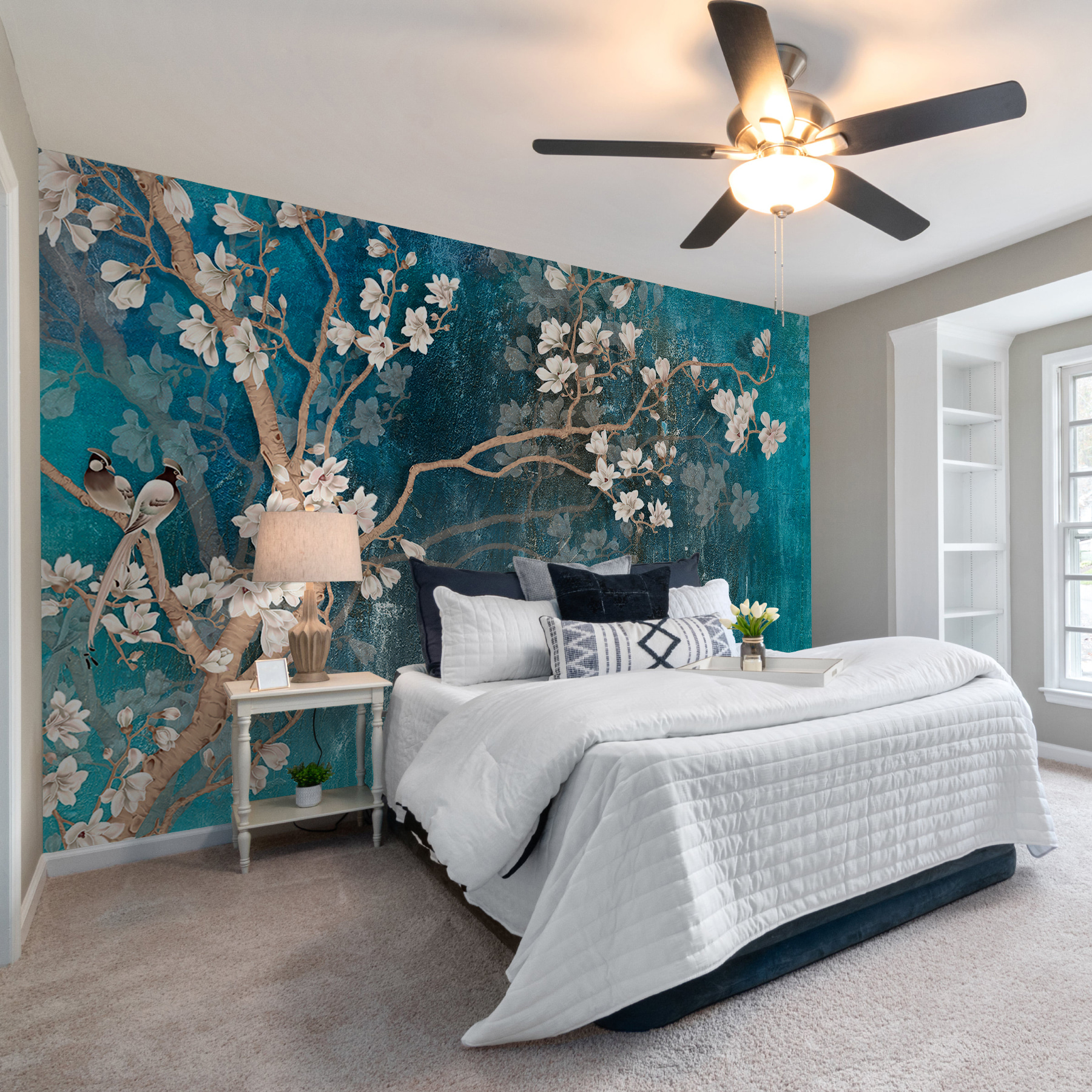 Ονειρευτήκατε ποτέ να φέρετε ένα άγγιγμα από την ομορφιά της φύσης στο εσωτερικό σας; Αυτή η τοιχογραφία “Λευκό λουλούδι σε μπλε φόντο” είναι σαν μια ανάσα φρέσκου αέρα για το χώρο σας! Φανταστείτε λεπτεπίλεπτα λευκά άνθη να πέφτουν καταρράκτες πάνω σε ένα ονειρικό μπλε φόντο, με γοητευτικά πουλιά να κάθονται πάντα τόσο χαριτωμένα. Είναι σαν να έχετε τον δικό σας μυστικό κήπο, χωρίς το πότισμα!