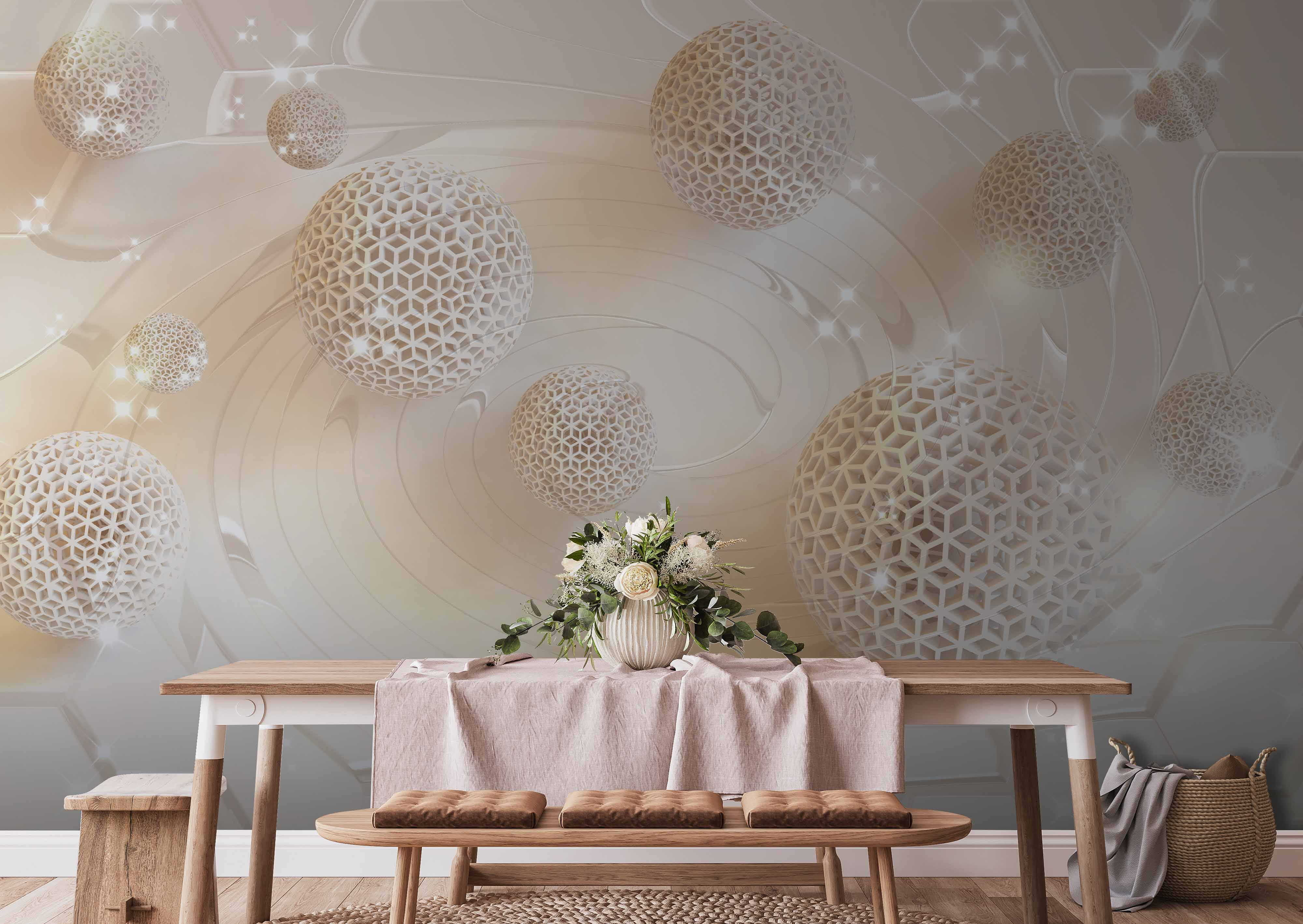Φανταστείτε να μπαίνετε σε ένα δωμάτιο και να αισθάνεστε ότι μόλις μπήκατε σε μια ονειρική, αστραφτερή χώρα των θαυμάτων. Αυτό ακριβώς κάνει το “Ταπετσαρίες Abstract Spheres with Sparkling Design” – μεταμορφώνει κάθε χώρο σε κάτι εξαιρετικό. Ο συνδυασμός γεωμετρικών μοτίβων και τρισδιάστατων σφαιρών – μοιάζουν σχεδόν να αιωρούνται! – σε συνδυασμό με μια διακριτική λάμψη, προσθέτει ένα στρώμα μαγείας που μαγνητίζει το μάτι.