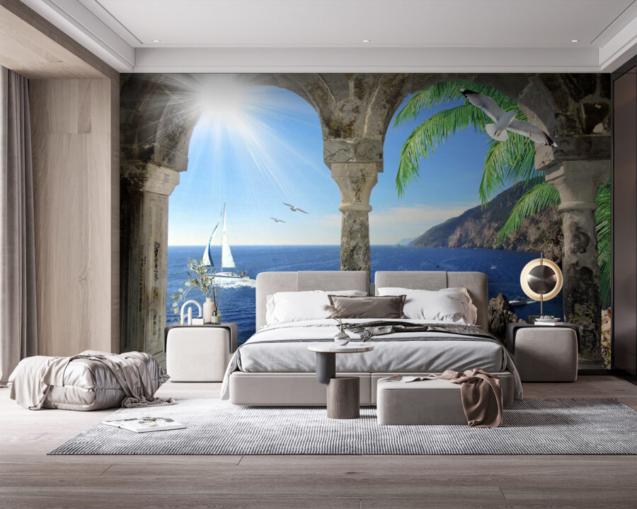 Μπείτε σε ένα κομμάτι παραδείσου με την ταπετσαρία τοίχου “Θέα στον ωκεανό από μια πέτρινη αψίδα”. Φανταστείτε να ξυπνάτε με τον απαλό ήχο των κυμάτων και τη μυρωδιά της αλμυρής ατμόσφαιρας, όλα από την άνεση του σαλονιού σας. Αυτή η ταπετσαρία δημιουργεί μια μικρή απόδραση, κάνοντας σας να νιώθετε ότι υπάρχει πάντα μια ηλιόλουστη μέρα ακριβώς έξω από την πόρτα σας. Οι πετούντες γλάροι και το γοητευτικό ιστιοφόρο ταιριάζουν απόλυτα με το απαλό κύμα των φοινίκων, ψιθυρίζοντας χαλάρωση. Είναι σαν διακοπές χωρίς να χρειάζεται να ετοιμάσετε βαλίτσες! Ιδανική για όσους αγαπούν τη γοητεία της θάλασσας και θέλουν να κάνουν τον χώρο τους να μοιάζει λίγο πιο μαγικός. Σκεφτείτε μόνο τις συζητήσεις που θα προκαλέσει – ποιος δεν αγαπά τις ωραίες ιστορίες από την παραλία; Και, επιπλέον, δεν χρειάζεται αντηλιακό!
