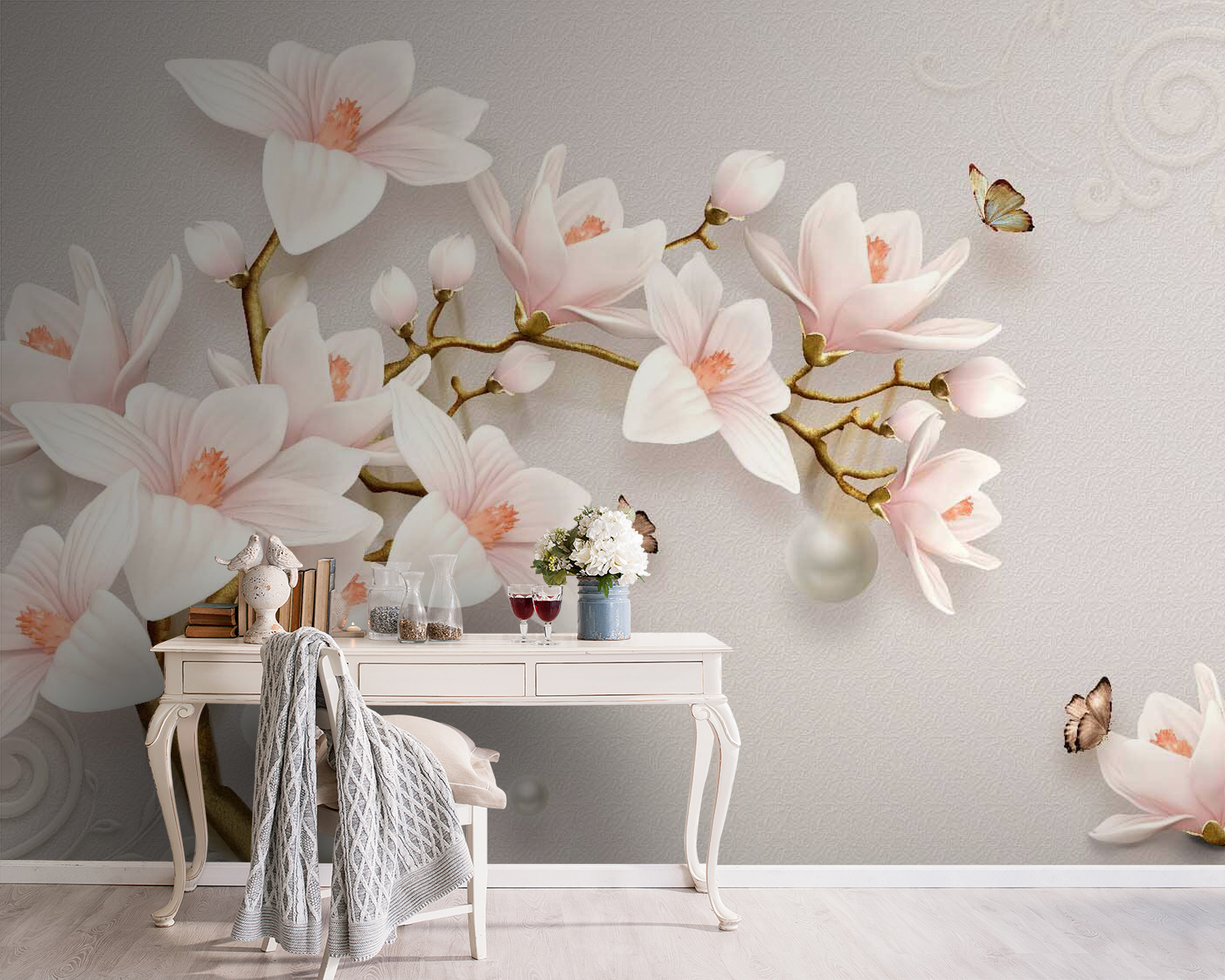 Μεταμορφώστε τον χώρο σας με αυτές τις μαγευτικές ταπετσαρίες τοίχου με λεπτεπίλεπτα άνθη σε απαλές αποχρώσεις. Φανταστείτε να μπαίνετε σε ένα δωμάτιο όπου τα λουλούδια και τα απαλά χρώματα δημιουργούν μια ατμόσφαιρα τόσο χαλαρωτική όσο ένα ζεστό φλιτζάνι τσάι. Ιδανικό για εκείνες τις ζεστές βραδιές ή ακόμα και για ένα αυθόρμητο πάρτι χορού στο σαλόνι σας – ποιος δεν λατρεύει ένα μικρό διάλειμμα για χορό; Οι υπέροχες λεπτομέρειες των λουλουδιών αιωρούνται χαριτωμένα, σχεδόν προσκαλώντας τις πεταλούδες να συμμετάσχουν στη διασκέδαση. Αυτή η ταπετσαρία δεν είναι απλώς διακοσμητική, αλλά αφηγείται μια ιστορία, σας τυλίγει με ηρεμία και γεμίζει τους τοίχους σας με ζωή. Ιδανική για όσους επιθυμούν να φέρουν λίγο από τη φύση στο εσωτερικό του σπιτιού τους ή απλώς να προσθέσουν μια όμορφη πινελιά.