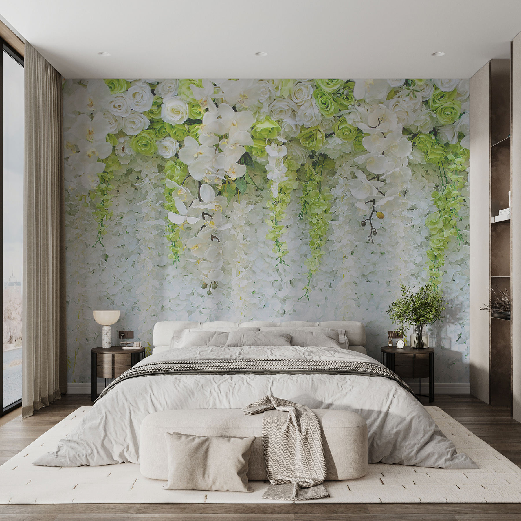 Φανταστείτε να μπαίνετε σε ένα δωμάτιο και να σας υποδέχεται ένας εκπληκτικός καταρράκτης λευκών και πράσινων λουλουδιών που κοσμεί τον τοίχο σας. Αυτή η τοιχογραφία “Ομάδα λευκών και πράσινων λουλουδιών” είναι σαν να μπαίνετε σε έναν γαλήνιο κήπο χωρίς να βγαίνετε από το σπίτι σας. Η λεπτομέρεια είναι εντυπωσιακή – σχεδόν μοιάζει σαν να μπορείτε να απλώσετε το χέρι σας και να αγγίξετε τα πέταλα. Είναι ιδανική για να προσθέσετε μια απαλή, φυσική πινελιά σε οποιοδήποτε δωμάτιο.