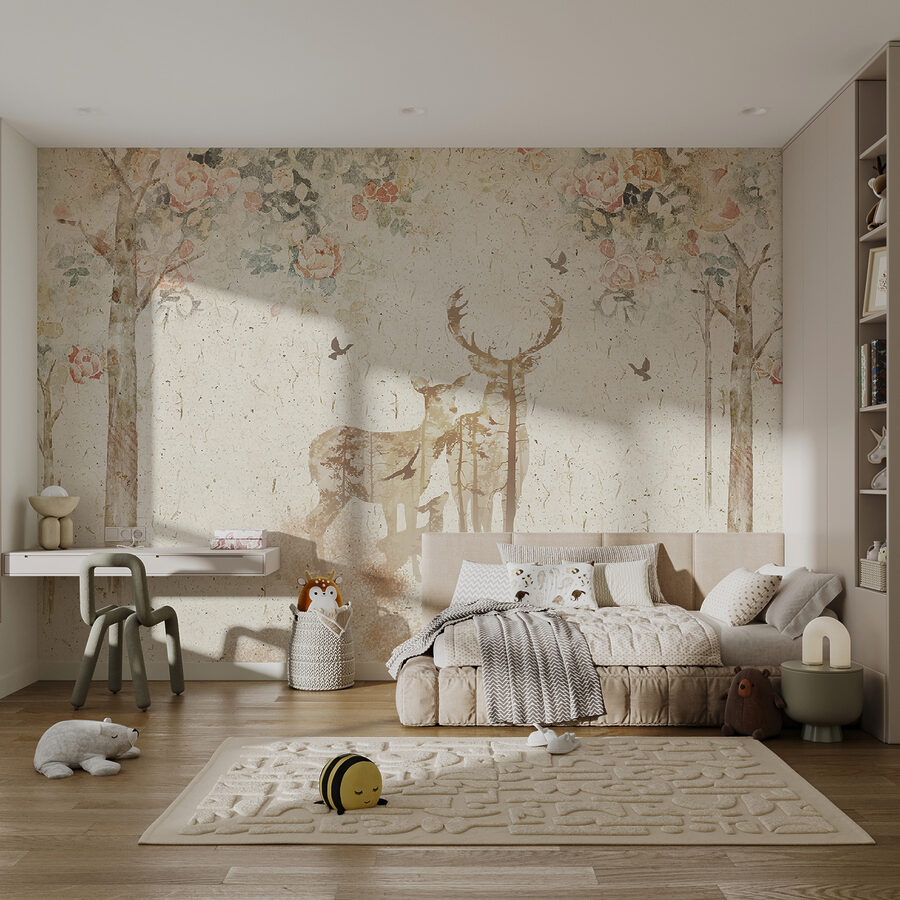 Φανταστείτε να έχετε μια ευγενική σκηνή δάσους στον τοίχο σας! Η τοιχογραφία τοίχου “Bird on a Tile” σας μεταφέρει κατευθείαν σε ένα ονειρικό δάσος, όπου ελάφια και πουλιά συνυπάρχουν ειρηνικά. Είναι σαν να μπαίνετε σε ένα παραμύθι κάθε φορά που μπαίνετε στο δωμάτιο – ιδανικό για ένα παιδικό καταφύγιο ή μια γοητευτική προσθήκη σε κάθε χώρο που χρειάζεται μια πινελιά ιδιοτροπίας. Αυτά τα απαλά, παστέλ λουλούδια και τα παιχνιδιάρικα πουλιά προσθέτουν μια πινελιά μαγείας. Δεν είναι απλώς μια ταπετσαρία, είναι μια ιστορία που περιμένει να ξεδιπλωθεί – φέρνοντας τη γαλήνη της φύσης στο σπίτι σας. Μαγικό, σωστά; 🌸🦌🌿