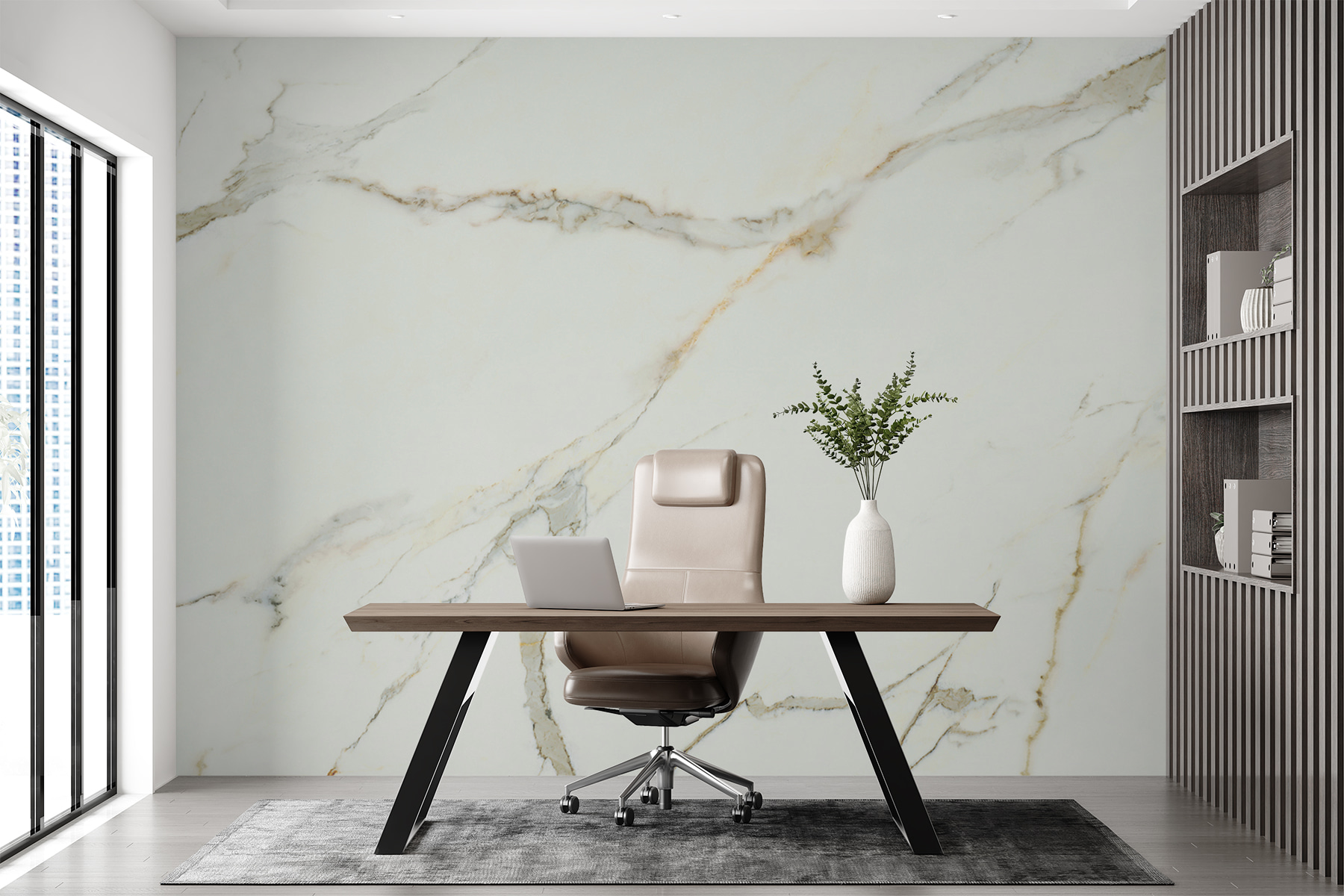 Μεταμορφώστε οποιοδήποτε δωμάτιο σε μια γαλήνια όαση με αυτή την εκπληκτική τοιχογραφία με λευκό μάρμαρο και έντονες μαύρες φλέβες. Είναι σαν να έχετε ένα κομμάτι της ίδιας της γης στον τοίχο σας. Φανταστείτε την ηρεμία που φέρνει, θυμίζοντάς σας ειρηνικές αποδράσεις ή αεράτα απογεύματα πίνοντας καφέ. Αυτή η τοιχογραφία δεν είναι απλώς μια επιλογή διακόσμησης- είναι μια ατμόσφαιρα. Επιπλέον, είναι πανεύκολα εφαρμόσιμη – σαν να κολλάς μια πραγματικά τεράστια αφίσα. Είτε σε ένα άνετο σαλόνι είτε σε ένα κομψό γραφείο, θα σας κάνει να νιώσετε σαν να μπήκατε σε ένα κομψό καταφύγιο. Ιδανικό για να προσθέσετε λίγη κομψότητα χωρίς φασαρία!