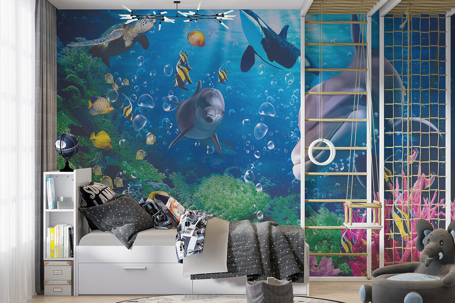 Βυθιστείτε σε έναν κόσμο θαυμάτων με αυτή τη ζωντανή τοιχογραφία τοίχου με χελώνες που κολυμπούν χαρούμενες ανάμεσα σε μια ζωντανή υποβρύχια σκηνή. Φανταστείτε να ατενίζετε παιχνιδιάρικα δελφίνια και πολύχρωμα ψάρια που πετάγονται μέσα από κοραλλιογενείς υφάλους, μετατρέποντας ένα απλό δωμάτιο σε μια μαγική υδάτινη όαση. Είναι σαν να έχετε έναν μυστικό υποβρύχιο παράδεισο ακριβώς στον τοίχο σας, πυροδοτώντας χαρά και δημιουργικότητα. Ιδανικό για τα παιδιά ή για οποιονδήποτε νεαρό στην καρδιά, προσθέτει μια βουτιά διασκέδασης και ίντριγκας. Κάθε ματιά θα μπορούσε να εμπνεύσει ένα όνειρο για ωκεάνιες περιπέτειες και τα μυστήρια του απέραντου γαλάζιου. Ποιος δεν θα το ήθελε αυτό; Απόλυτα παιχνιδιάρικο, μετατρέπει κάθε χώρο σε μια απολαυστική απόδραση. Ιδανικό για παιδικό δωμάτιο, παιδότοπο ή ακόμα και για μια ζεστή γωνιά όπου μπορεί κανείς να χαλαρώσει μετά από μια κουραστική μέρα.