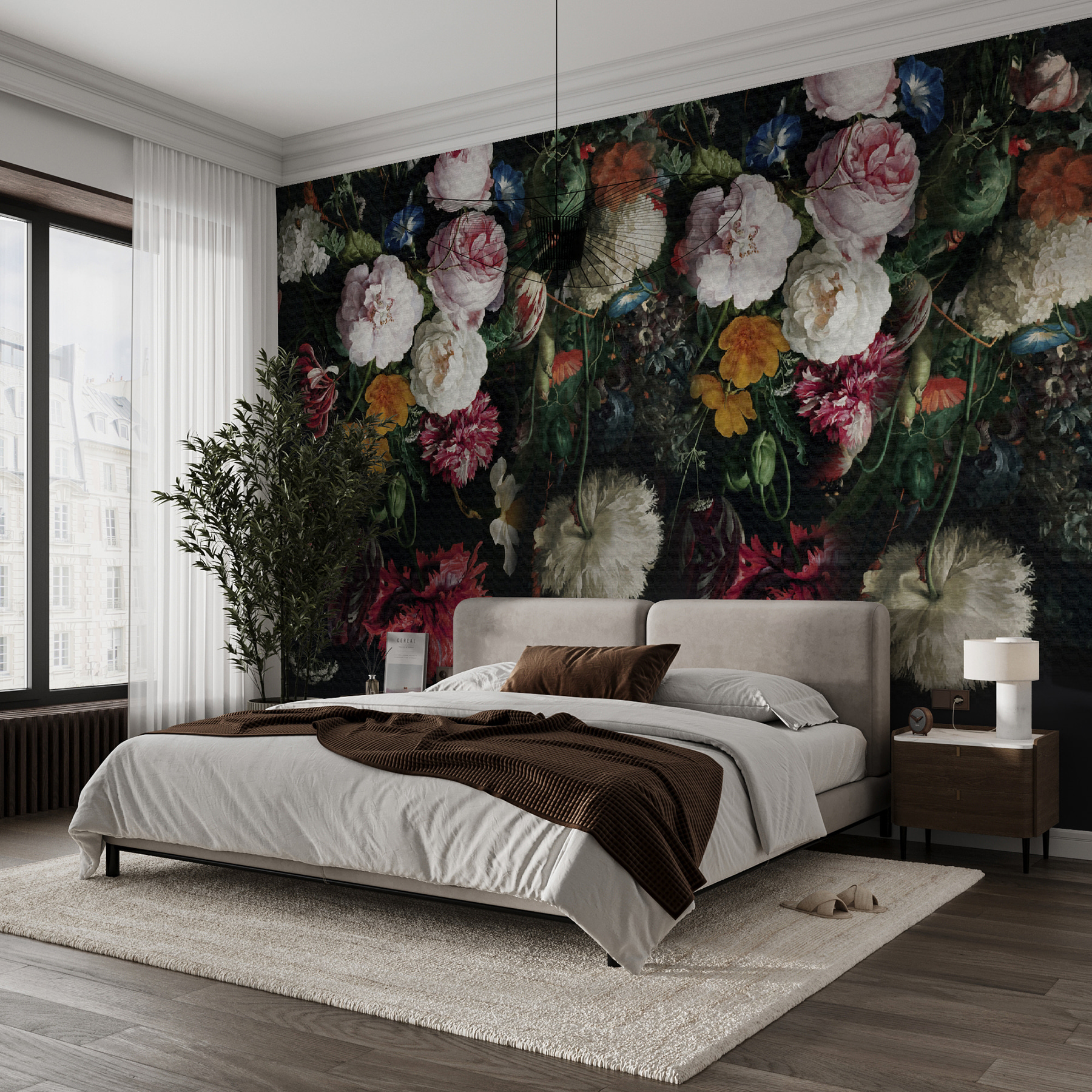 Το “Vivid Blossoms Cascade in Darkness” είναι σαν ένας πανέμορφος μυστικός κήπος στο σαλόνι σας! Φανταστείτε ζωντανά λουλούδια να αιωρούνται φαινομενικά σε ένα πλούσιο, σκοτεινό φόντο – είναι σαν μια ονειρική καρτ ποστάλ από μια μεταμεσονύκτια χώρα των θαυμάτων. Αυτή η τοιχογραφία έχει αυτή τη μαγνητική γοητεία, που σε τραβάει και σε κάνει να νιώθεις ότι μπορείς σχεδόν να αγγίξεις τα πέταλα.