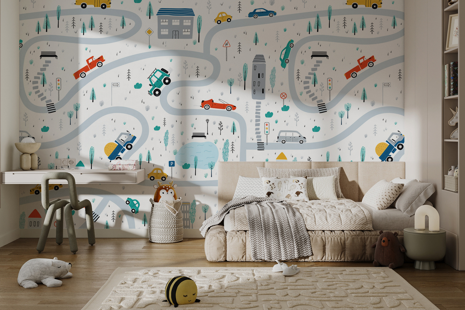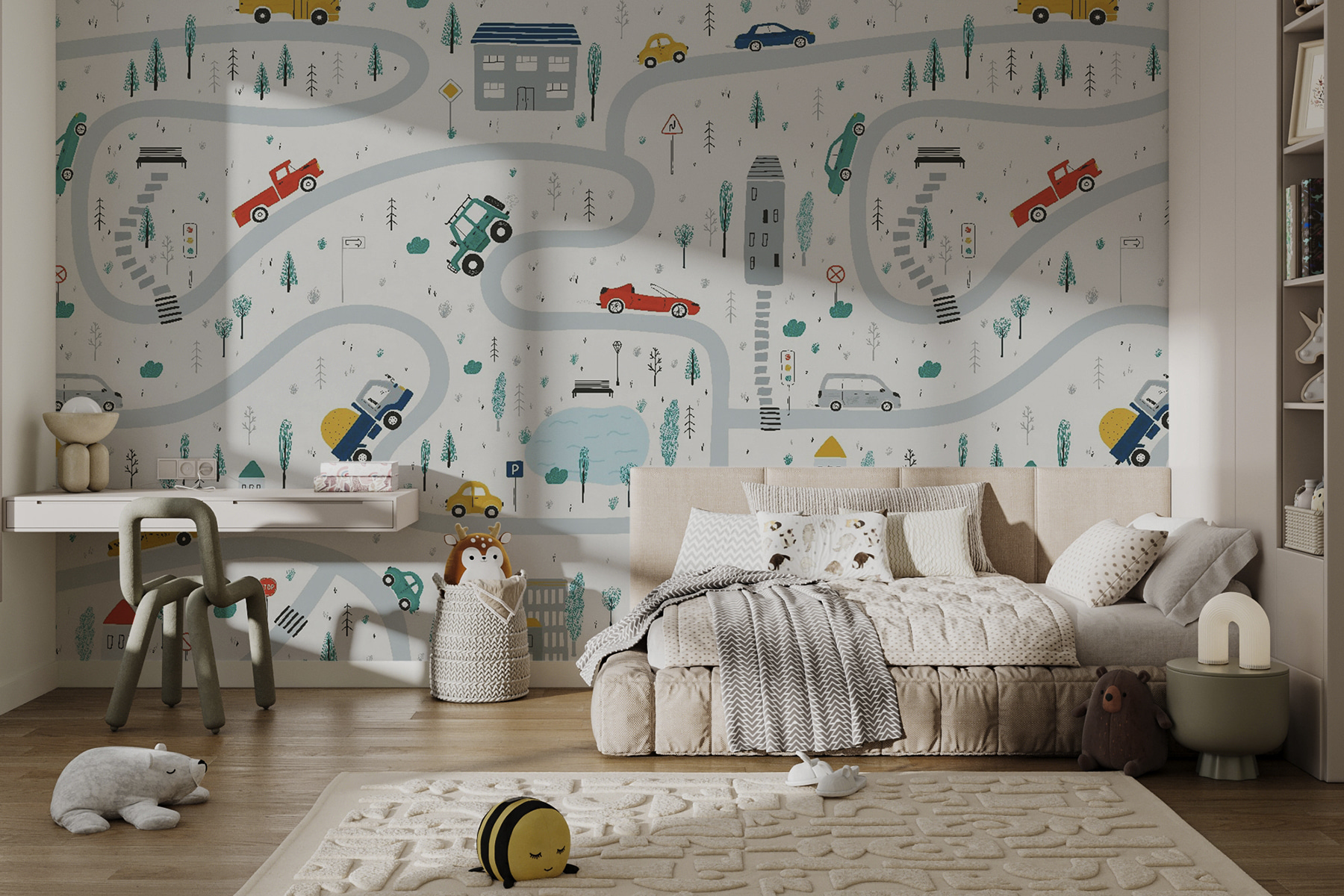 Έχετε ένα παιδί που λατρεύει τα αυτοκίνητα και τα κτίρια; Αυτός ο “Χάρτης τοιχογραφιών τοίχου με αυτοκίνητα και κτίρια” είναι ένα απόλυτο όνειρο! Φανταστείτε – ζωντανούς δρόμους που ελίσσονται σε όλο τον τοίχο, πολύχρωμα αυτοκίνητα που τρέχουν γύρω-γύρω, και γοητευτικά μικρά κτίρια που διασκορπίζουν τη σκηνή. Είναι σαν να ζείτε σε ένα μίνι αστικό τοπίο! Αυτή η τοιχογραφία φωτίζει κάθε παιδικό δωμάτιο, μετατρέποντας τους απλούς τοίχους σε παιχνιδιάρικες περιπέτειες. Ιδανική για παραμύθια ή για να κεντρίσετε τη φαντασία του μικρού – σκεφτείτε μόνο τις ιστορίες που θα ξεδιπλωθούν πριν τον ύπνο! Επιπλέον, τα απαλά χρώματα και τα ευφάνταστα σχέδια κάνουν το χώρο να μοιάζει άνετος και διασκεδαστικός. Δεν είναι απλώς μια τοιχογραφία- είναι μια πρόσκληση για εξερεύνηση, όνειρα και παιχνίδι κάθε μέρα.