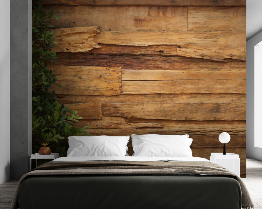 Φανταστείτε να μεταφέρετε τη γοητεία ενός ρουστίκ, ξεπερασμένου ξύλινου τοίχου κατευθείαν στο σπίτι σας – με ένα twist. Αυτή η τοιχογραφία “Weathered Wooden Wall with Greenery” είναι σαν να τυλίγεστε σε μια ζεστή ατμόσφαιρα καμπίνας, ακριβώς στο σαλόνι σας! Το ξύλο φαίνεται παλιό με τον καλύτερο τρόπο, γεμάτο χαρακτήρα και ιστορία, και αυτά τα πράσινα φύλλα; Απλά το κάνουν να αισθάνεται ζωντανό, σαν να έχετε τη φύση να κρυφοκοιτάζει στο χώρο σας.