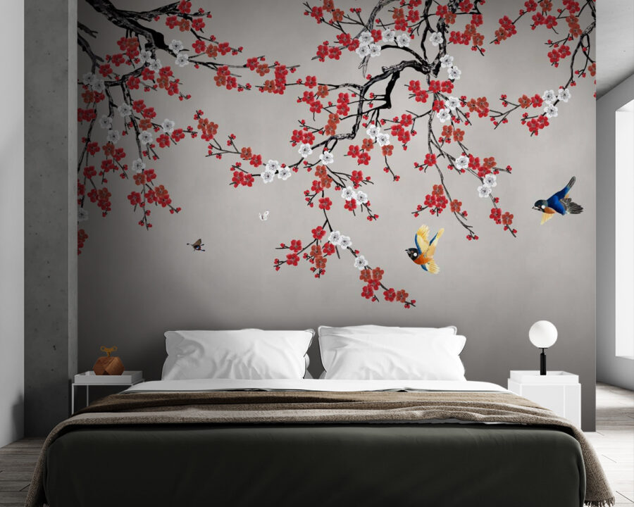 Μεταμορφώστε το χώρο σας με αυτή τη μαγευτική τοιχογραφία με ζωντανά πουλιά που πετούν ανάμεσα σε ντελικάτα άνθη κερασιάς. Φανταστείτε να ξυπνάτε κάθε μέρα περιτριγυρισμένοι από την ομορφιά της φύσης, καθώς αυτοί οι φτερωτοί φίλοι γλιστρούν αβίαστα στον αέρα. Το απαλό φόντο έρχεται σε τέλεια αντίθεση με τις έντονες αποχρώσεις, φέρνοντας ζωή και ενέργεια σε κάθε δωμάτιο. Είναι σαν να έχετε ένα μικρό κομμάτι άνοιξης στον τοίχο σας όλο το χρόνο. Φανταστείτε άνετα βράδια όπου η τοιχογραφία χρησιμεύει ως εντυπωσιακό σκηνικό για συγκεντρώσεις ή γαλήνια πρωινά με ένα φλιτζάνι καφέ στο χέρι. Αυτή η τοιχογραφία δεν διακοσμεί απλώς, αλλά εμπνέει ιστορίες, όνειρα και καλή διάθεση. Είτε πρόκειται για υπνοδωμάτιο, σαλόνι ή ακόμη και για μια παιχνιδιάρικη γωνιά, προσκαλεί ζεστασιά και χαρά. Δεν θα ήταν υπέροχο να καθίσετε και να απολαύσετε το ευτυχισμένο θέαμα;
