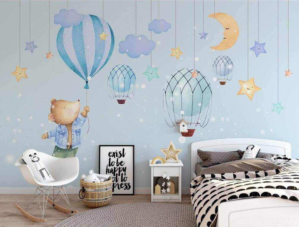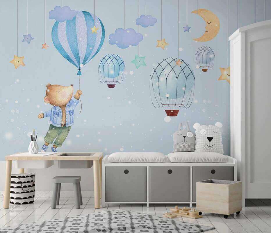 Μεταμορφώστε οποιονδήποτε χώρο σε ένα φανταστικό παραμυθένιο τοπίο με αυτή την υπέροχη ταπετσαρία τοίχου που απεικονίζει ένα χαριτωμένο αρκουδάκι καρτούν που κρατάει χαρούμενα ένα μπαλόνι. Φανταστείτε το εξής: ένα μικρό παιδί να κοιτάζει με δέος το αρκουδάκι που αιωρείται πάνω από έναν ονειρικό ουρανό γεμάτο χαμογελαστά αστέρια και χαριτωμένα αερόστατα. Είναι το είδος της τέχνης τοίχου που αναζωπυρώνει τη φαντασία και προσκαλεί στην περιπέτεια, προσθέτοντας ταυτόχρονα μια πινελιά χρώματος και χαράς. Ιδανική για παιδικά δωμάτια, αίθουσες παιχνιδιών ή οποιαδήποτε ζεστή γωνιά που χρειάζεται μια πινελιά χαράς. Μπορείτε να φανταστείτε την ώρα του παραμυθιού κάτω από αυτή την ταπετσαρία; Είναι σαν μια ζεστή αγκαλιά για τους τοίχους! Γιατί λοιπόν να μην αφήσετε αυτό το αρκουδάκι να σας ταξιδέψει;