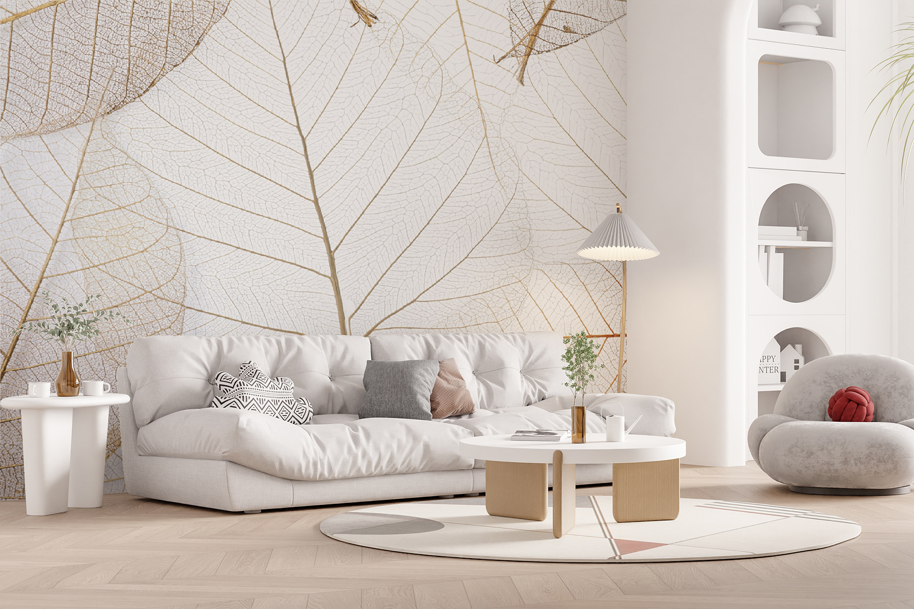 Μεταμορφώστε το χώρο σας με την υπέροχη τοιχογραφία “Delicate Leaf Veins”. Φανταστείτε να μπαίνετε σε ένα δωμάτιο όπου τα απαλά περιγράμματα των φύλλων δημιουργούν ένα απαλό, εμπνευσμένο από τη φύση καταφύγιο. Είναι σαν να έχετε ένα γαλήνιο δάσος ακριβώς στον τοίχο σας, που σας προσκαλεί να χαλαρώσετε και να ξεκουραστείτε. Τα καταπραϋντικά χρώματα και οι περίπλοκες λεπτομέρειες θα μπορούσαν ακόμη και να προκαλέσουν μια συζήτηση – τέλεια για να εντυπωσιάσετε τους φίλους ή την οικογένεια. Είτε πρόκειται για το σαλόνι είτε για μια ζεστή γωνιά ανάγνωσης, αυτή η τοιχογραφία προσθέτει μια πινελιά ηρεμίας. Αφήστε την ομορφιά της φύσης να σας αγκαλιάσει καθημερινά, σχεδόν σαν να φέρνετε την ύπαιθρο μέσα, χωρίς όλη τη βρωμιά. Τι ανάσα φρέσκου αέρα!