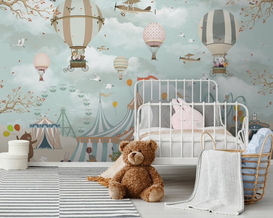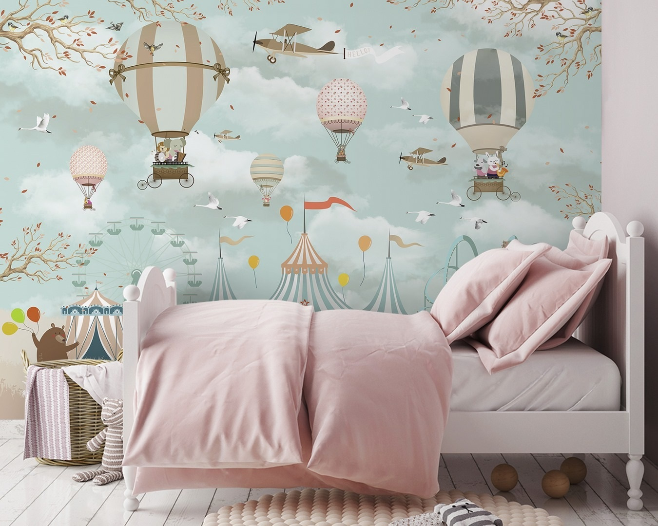 Φανταστείτε να μπαίνετε σε έναν χώρο που μοιάζει με μια παράξενη περιπέτεια. Αυτή η τοιχογραφία, με γοητευτικά αερόστατα και παιχνιδιάρικα πουλιά, δημιουργεί έναν απολαυστικό ουρανό όπου η φαντασία πετάει. Κάθε χαρακτήρας φέρνει λίγη χαρά, πυροδοτώντας ιστορίες και ονειροπολήσεις – είτε πρόκειται για έναν γενναίο ελέφαντα είτε για μια κομψή αρκούδα με μπαλόνια. Ιδανικό για το παιδικό δωμάτιο ή για οποιοδήποτε σημείο που θα χρειαζόταν μια δόση διασκέδασης, ξυπνά παιδικές αναμνήσεις από ταξίδια στο τσίρκο και ηλιόλουστες μέρες που περνάτε έξω. Μεταμορφώστε τον τοίχο και αφήστε τη μαγεία να πετάξει – ποιος δεν θα ήθελε να απογειωθεί κάτω από αυτόν τον μαγευτικό ουρανό;