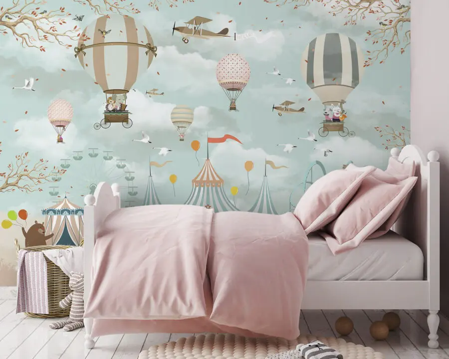 Φανταστείτε να μπαίνετε σε έναν χώρο που μοιάζει με μια παράξενη περιπέτεια. Αυτή η τοιχογραφία, με γοητευτικά αερόστατα και παιχνιδιάρικα πουλιά, δημιουργεί έναν απολαυστικό ουρανό όπου η φαντασία πετάει. Κάθε χαρακτήρας φέρνει λίγη χαρά, πυροδοτώντας ιστορίες και ονειροπολήσεις – είτε πρόκειται για έναν γενναίο ελέφαντα είτε για μια κομψή αρκούδα με μπαλόνια. Ιδανικό για το παιδικό δωμάτιο ή για οποιοδήποτε σημείο που θα χρειαζόταν μια δόση διασκέδασης, ξυπνά παιδικές αναμνήσεις από ταξίδια στο τσίρκο και ηλιόλουστες μέρες που περνάτε έξω. Μεταμορφώστε τον τοίχο και αφήστε τη μαγεία να πετάξει – ποιος δεν θα ήθελε να απογειωθεί κάτω από αυτόν τον μαγευτικό ουρανό;