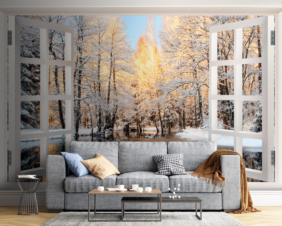 Μεταμορφώστε οποιοδήποτε δωμάτιο σε μια ανάσα φρέσκου αέρα με αυτή την εκπληκτική τοιχογραφία με μια παιχνιδιάρικη σκηνή πουλιών που κοιτάζουν μια γαλήνια λίμνη, πλαισιωμένη από ένα άνετο παράθυρο. Φανταστείτε να ξυπνάτε με αυτή τη θέα κάθε μέρα – την απαλή λάμψη του νερού, τα χιονισμένα δέντρα που γυαλίζουν απαλά στο φως και αυτά τα περίεργα πουλιά που σας κοιτάζουν πίσω. Είναι σαν να έχετε τη φύση στα χέρια σας. Ιδανικό για κάθε ατμόσφαιρα, είτε πρόκειται για ένα χαλαρό σαλόνι είτε για ένα ήσυχο υπνοδωμάτιο. Αποχαιρετήστε τους άχαρους τοίχους και αφήστε το χώρο σας να διηγηθεί μια ιστορία που θα κάνει κάθε επισκέπτη να κάνει μια διπλή ματιά. Μια ευγενική υπενθύμιση της ομορφιάς που βρίσκεται ακριβώς έξω και περιμένει να την αγαπήσετε.