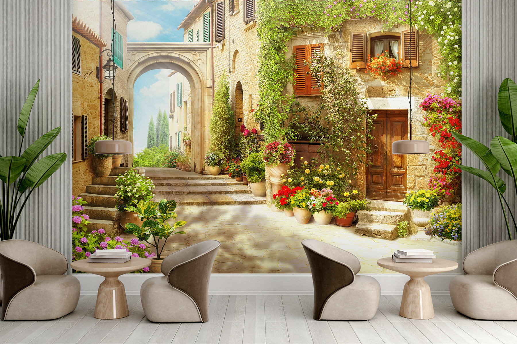 Μεταμορφώστε οποιοδήποτε δωμάτιο σε μια γοητευτική απόδραση με αυτή την απολαυστική τοιχογραφία τοίχου – έναν ζωντανό δρόμο γεμάτο λουλούδια. Φανταστείτε το: ηλιόλουστα μονοπάτια πλαισιωμένα από πολύχρωμα άνθη και ρουστίκ αρχιτεκτονική. Είναι σαν να μπαίνετε σε μια σκηνή από παραμύθι, όπου κάθε ματιά φέρνει μια νέα ανακάλυψη. Οι απαλές αποχρώσεις και οι ζωντανές λεπτομέρειες μπορούν να φωτίσουν έναν θαμπό χώρο, κάνοντάς τον να μοιάζει φρέσκος και φιλόξενος. Οι φίλοι μπορεί να σας ρωτήσουν αν το βρήκατε σε ταξίδι στην Ιταλία! Είτε πρόκειται για μια ζεστή γωνιά είτε για ένα ζωντανό σαλόνι, αυτή η τοιχογραφία προσθέτει την τέλεια πινελιά ζεστασιάς και χαράς – ιδανική για τις μέρες που χρειάζεται μια μικρή απόδραση.