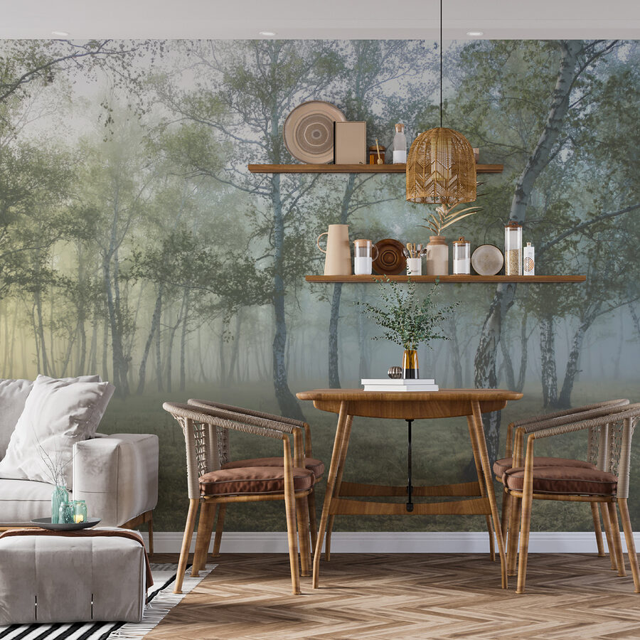 Φανταστείτε το εξής: μπαίνετε σε ένα δωμάτιο και να ‘το – ένα γαλήνιο δασικό σκηνικό, το είδος με την τέλεια, ομιχλώδη πρωινή λάμψη που βγαίνει κατευθείαν από όνειρο. Καλώς ήρθατε στο “Ομίχλη σε ένα ήρεμο δάσος”. Είναι σαν να μπαίνετε στο δικό σας ιδιωτικό δασικό καταφύγιο! Φανταστείτε να ξεκινάτε τη μέρα σας με ένα φλιτζάνι καφέ, ατενίζοντας αυτή την τοιχογραφία, νιώθοντας την ηρεμία να σας κατακλύζει.