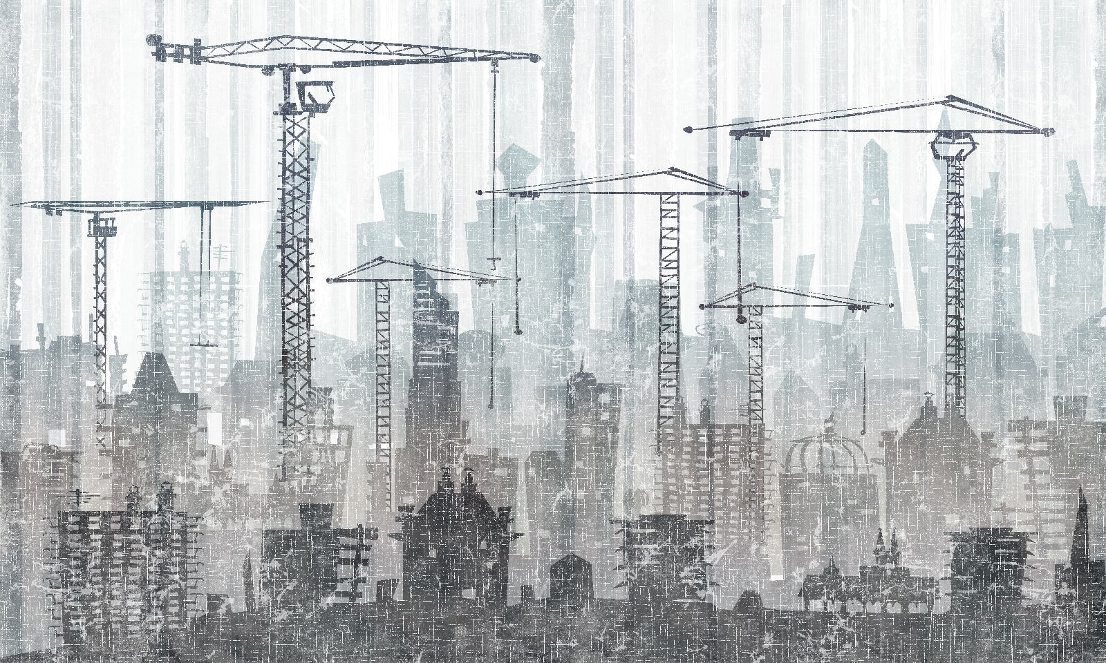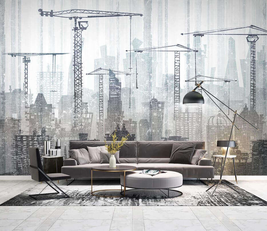 Δείτε αυτή την έξυπνη τοιχογραφία, “Τοπίο πόλης με γερανούς” – ιδανική για όσους αρέσκονται σε δροσερά αστικά vibes. Φανταστείτε να κοιτάζετε τον τοίχο σας και να βλέπετε αυτό το τολμηρό, γεωμετρικό σχέδιο γερανών που στέκονται ψηλά σε ένα μοντέρνο σκηνικό πόλης. Έχει αυτή τη μοντέρνα, ημιτελή εμφάνιση που βλέπετε στην καλύτερη διακόσμηση βιομηχανικού στυλ. Τα σιωπηλά γκρι και λευκά μπορεί να ακούγονται απλά, αλλά δημιουργούν αυτό το φοβερό τρισδιάστατο βάθος που σας κάνει σχεδόν να αισθάνεστε ότι βρίσκεστε στη μέση ενός πολυσύχναστου εργοταξίου – χωρίς τον θόρυβο, ευτυχώς!