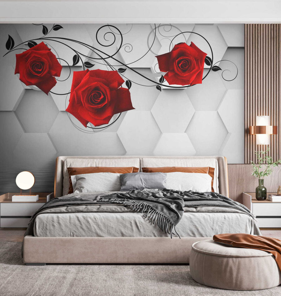 Μεταμορφώστε τον χώρο σας με αυτή την εκπληκτική ταπετσαρία τοίχου με ζωντανά κόκκινα τριαντάφυλλα που συνυφαίνονται χαριτωμένα με κομψά μαύρα κλήματα. Είναι σαν να έχετε έναν ανθισμένο κήπο στο σαλόνι σας, χωρίς το ποτιστήρι και το περιστασιακό βουητό των μελισσών. Το φόντο με τα κομψά εξάγωνα διατηρεί το μοντέρνο ύφος, ενώ τα τριαντάφυλλα προσθέτουν μια πινελιά ρομαντισμού, ιδανική για τη δημιουργία μιας ζεστής ατμόσφαιρας. Είτε πρόκειται για έναν χαλαρό πρωινό καφέ το Σαββατοκύριακο είτε για ένα ζωντανό δείπνο, αυτή η ταπετσαρία δημιουργεί την κατάλληλη ατμόσφαιρα. Είναι το είδος της διακόσμησης που πυροδοτεί συζητήσεις και ίσως μερικές ονειροπολήσεις για μυστικούς κήπους. Ποιος δεν θα ένιωθε λίγο πιο εμπνευσμένος κοιτάζοντας αυτές τις ομορφιές;