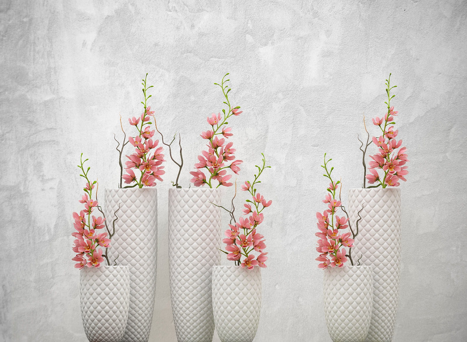 Transform your space with this delightful wall mural featuring a charming group of white vases adorned with pink flowers. It’s like having a mini Japanese garden right in your living room—minus the need to water anything! Imagine coming home after a long day, flopping onto your couch, and being greeted by these lovely blooms. The soft colors and delicate details bring a sense of calm, like a gentle breeze on a spring day. Perfect for creating a cozy nook or brightening up a dull corner. Who knew decor could be this flirty?