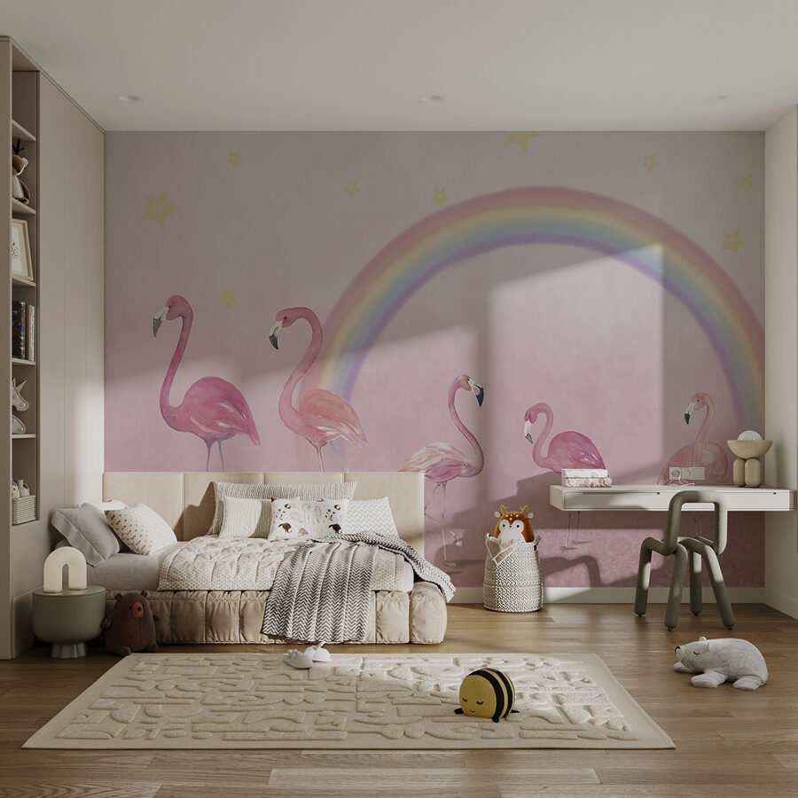 Αισθάνεστε ότι ο χώρος του παιδιού σας χρειάζεται μια πινελιά από το κάτι παραπάνω; Γνωρίστε την τοιχογραφία “Ροζ φλαμίνγκο σε ροζ φόντο”! Φανταστείτε να ξυπνάτε μπροστά σε μια παρέλαση αυτών των υπέροχων φτερωτών φίλων – τόσο ζωντανό μπροστά σε αυτόν τον ονειρικό ροζ ουρανό. Είναι σαν να μπαίνετε σε ένα παραμύθι κάθε πρωί. Τα μικρά αστέρια και το ουράνιο τόξο απλά προσθέτουν στην ιδιοτροπία, δεν νομίζετε; Ιδανικό για να κεντρίσετε τη φαντασία σας! Επιπλέον, βρίσκεται στις κατηγορίες των παιδικών και δημοφιλών τοιχογραφιών – φαντάζομαι ότι έχει επιτυχία για κάποιο λόγο! Ρίξτε λίγη μαγεία σε αυτούς τους τοίχους και δείτε ολόκληρο το δωμάτιο να ζωντανεύει!