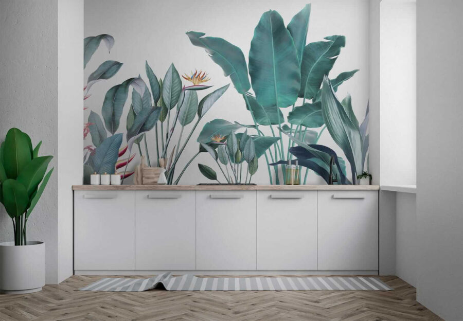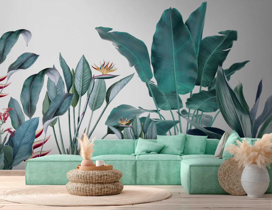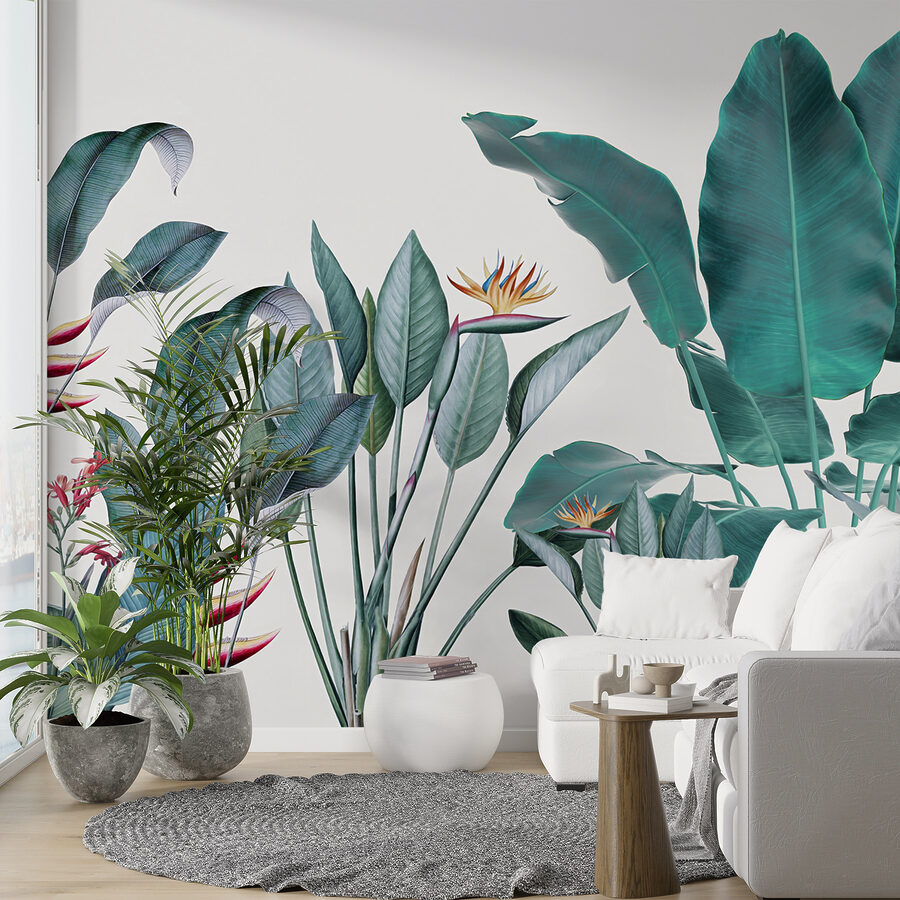 Ψάχνετε να μεταμορφώσετε το χώρο σας; Δείτε αυτή την πανέμορφη τοιχογραφία που ονομάζεται “Τροπικό φύλλωμα με ζωντανά χρώματα” – ιδανική για να φέρετε μια βουτιά από τη ζούγκλα στο σαλόνι σας! Φανταστείτε να ξυπνάτε με αυτό το ζωντανό πράσινο κάθε μέρα… είναι σαν μίνι διακοπές για τα μάτια σας. Ο συνδυασμός των τολμηρών χρωμάτων και οι περίπλοκες λεπτομέρειες στα φύλλα και τα λουλούδια σας κάνουν να αισθάνεστε σαν να βρίσκεστε σε έναν πλούσιο, τροπικό παράδεισο.