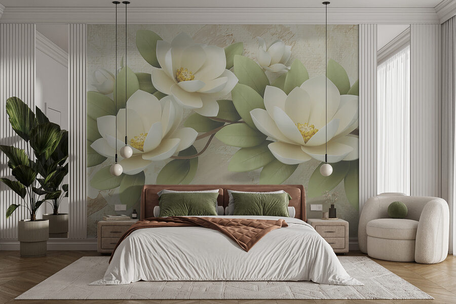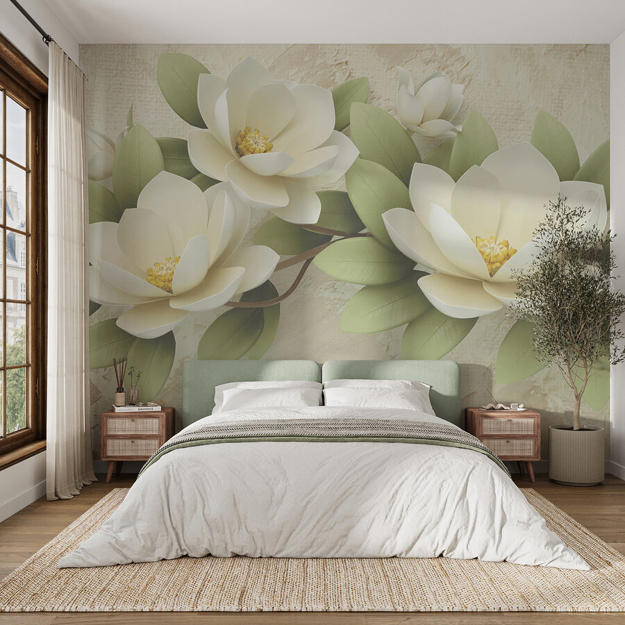 Το τρισδιάστατο εφέ αυτής της τοιχογραφίας ξεχωρίζει πραγματικά, προσθέτοντας βάθος και ζωή στους τοίχους σας – ειλικρινά, είναι σχεδόν σαν να μπορείτε να απλώσετε το χέρι σας και να αγγίξετε τα πέταλα. Επιπλέον, αυτά τα απαλά πράσινα φύλλα; Απλά ηρεμούν. Φανταστείτε να το τοποθετήσετε στο σαλόνι ή την κρεβατοκάμαρά σας… ίσως ακόμη και σε έναν διάδρομο! Οι άνθρωποι θα μπαίνουν μέσα και θα αισθάνονται αμέσως αυτή τη χαλαρωτική, αριστοκρατική ατμόσφαιρα.