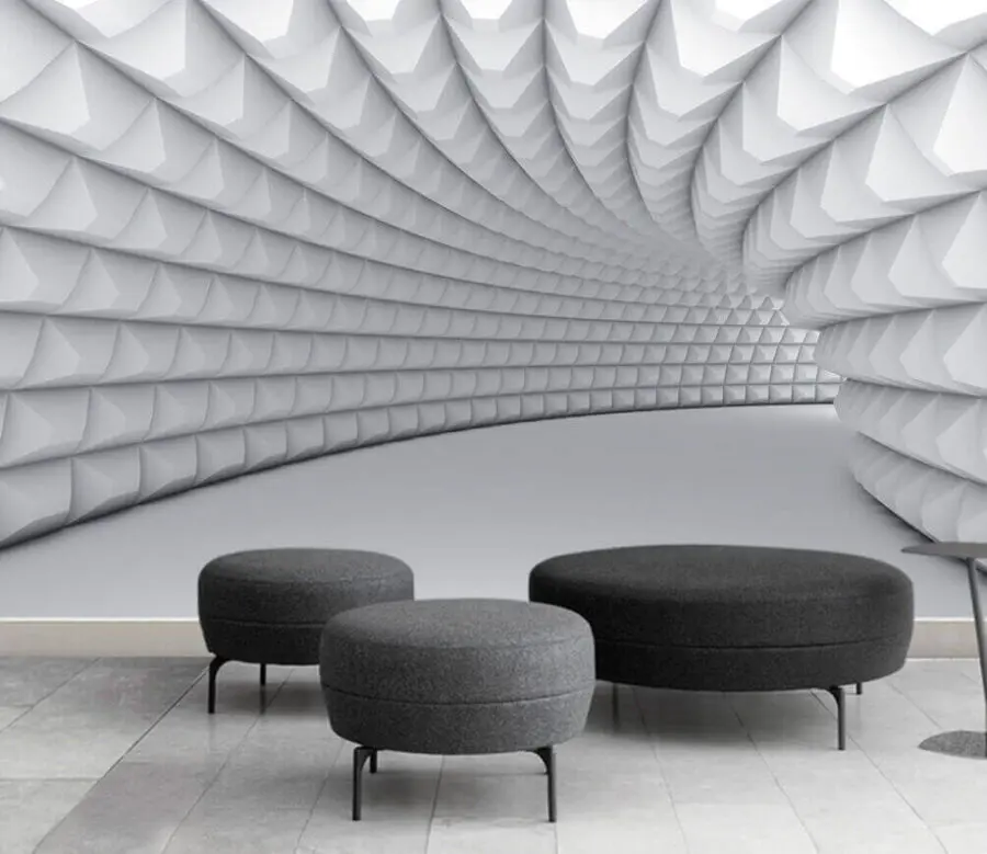 Μπείτε σε έναν μαγευτικό κόσμο με αυτή τη φουτουριστική γεωμετρική τοιχογραφία σήραγγας. Φανταστείτε να μετατρέψετε έναν απλό τοίχο σε ένα καθηλωτικό ταξίδι – όπου κάθε ματιά μοιάζει σαν να βουτάτε σε ένα κύμα από αιχμηρές γωνίες και ομαλές καμπύλες. Είναι σαν να χάνεστε σε ένα όνειρο όπου τα πάντα έχουν σχήμα και σκοπό. Ιδανικό για ένα σαλόνι ή έναν δημιουργικό χώρο, αυτό το σχέδιο προκαλεί συζητήσεις και εμπνέει. Φανταστείτε τους φίλους σας να το θαυμάζουν πίνοντας καφέ ή απλά ονειροπολώντας για άλλα βασίλεια. Προσθέτει αβίαστα βάθος και μια παιχνιδιάρικη ατμόσφαιρα, προσκαλώντας όλους να ρίξουν μια πιο προσεκτική ματιά, και ίσως μια ή δύο selfie!