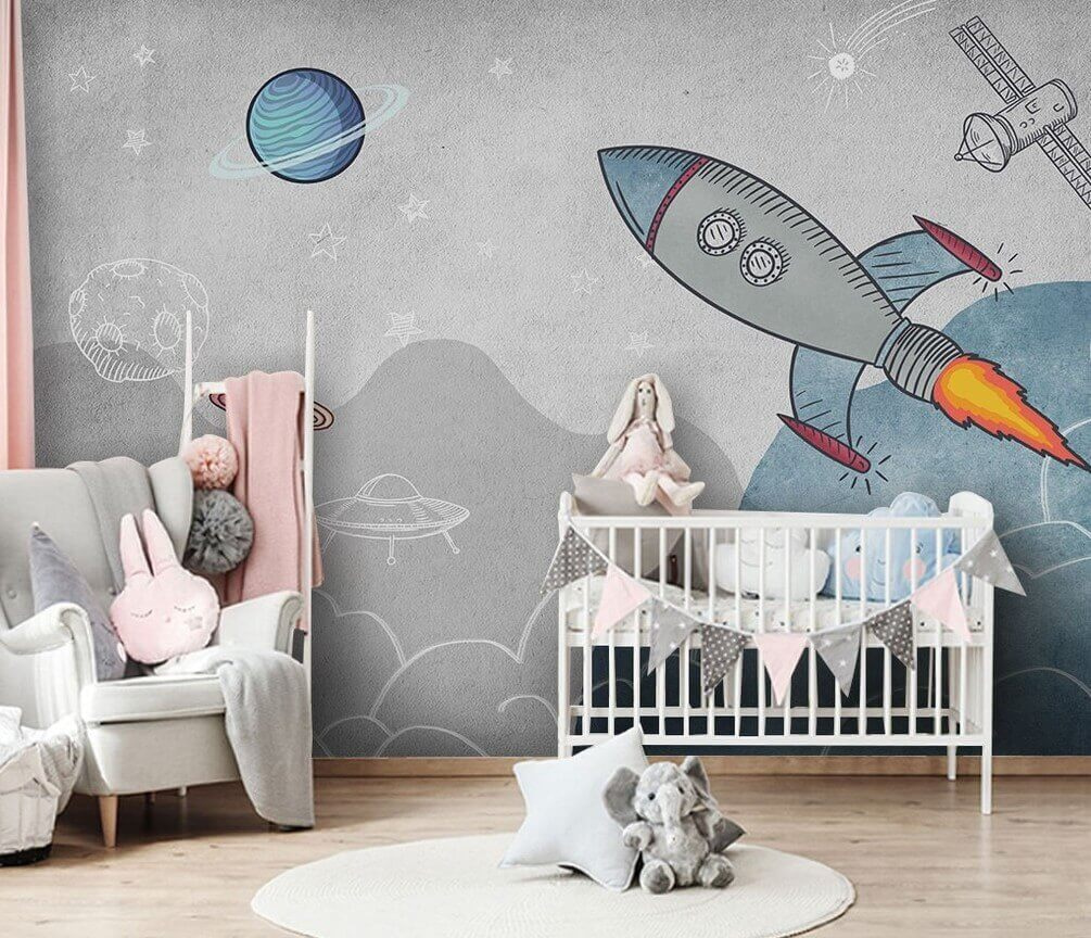 Ονειρευτήκατε ποτέ να μετατρέψετε το δωμάτιο ενός παιδιού σε μια ιδιόρρυθμη περιπέτεια στο διάστημα; Φανταστείτε αυτό: μια τοιχογραφία με πυραυλάκατο που εκτοξεύεται ανάμεσα σε παιχνιδιάρικους πλανήτες και σκίτσα μακρινών γαλαξιών. Είναι σαν μια σελίδα κατευθείαν από παραμύθι!