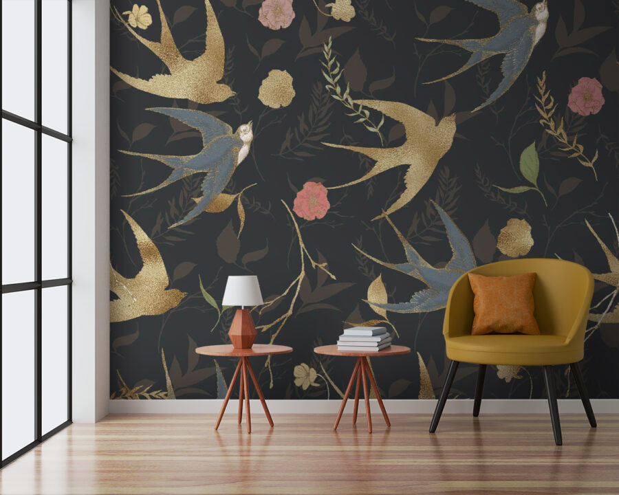 Μεταμορφώστε οποιονδήποτε χώρο με αυτή την απολαυστική τοιχογραφία τοίχου με ένα μοτίβο από ευφάνταστα πουλιά και γοητευτικά λουλούδια. Φανταστείτε να μπαίνετε στο δωμάτιό σας και να σας υποδέχονται ζωηρές δίνες χρώματος – αυτά τα πουλιά μοιάζουν σχεδόν να βρίσκονται σε πτήση, έτοιμα να σας ταξιδέψουν σε μια περιπέτεια. Οι λουλουδένιες πινελιές προσθέτουν μια απαλή ζεστασιά που σας προσκαλεί να σταματήσετε, να αναπνεύσετε και να εκτιμήσετε το περιβάλλον σας. Είναι σαν να έχετε έναν κήπο και φίλους πουλιά ακριβώς στους τοίχους σας, καθιστώντας το ιδανικό για άνετα βράδια ή ζωηρές συγκεντρώσεις. Φέρτε τη φύση στο εσωτερικό και αφήστε τους τοίχους σας να διηγηθούν μια δική τους ιστορία!