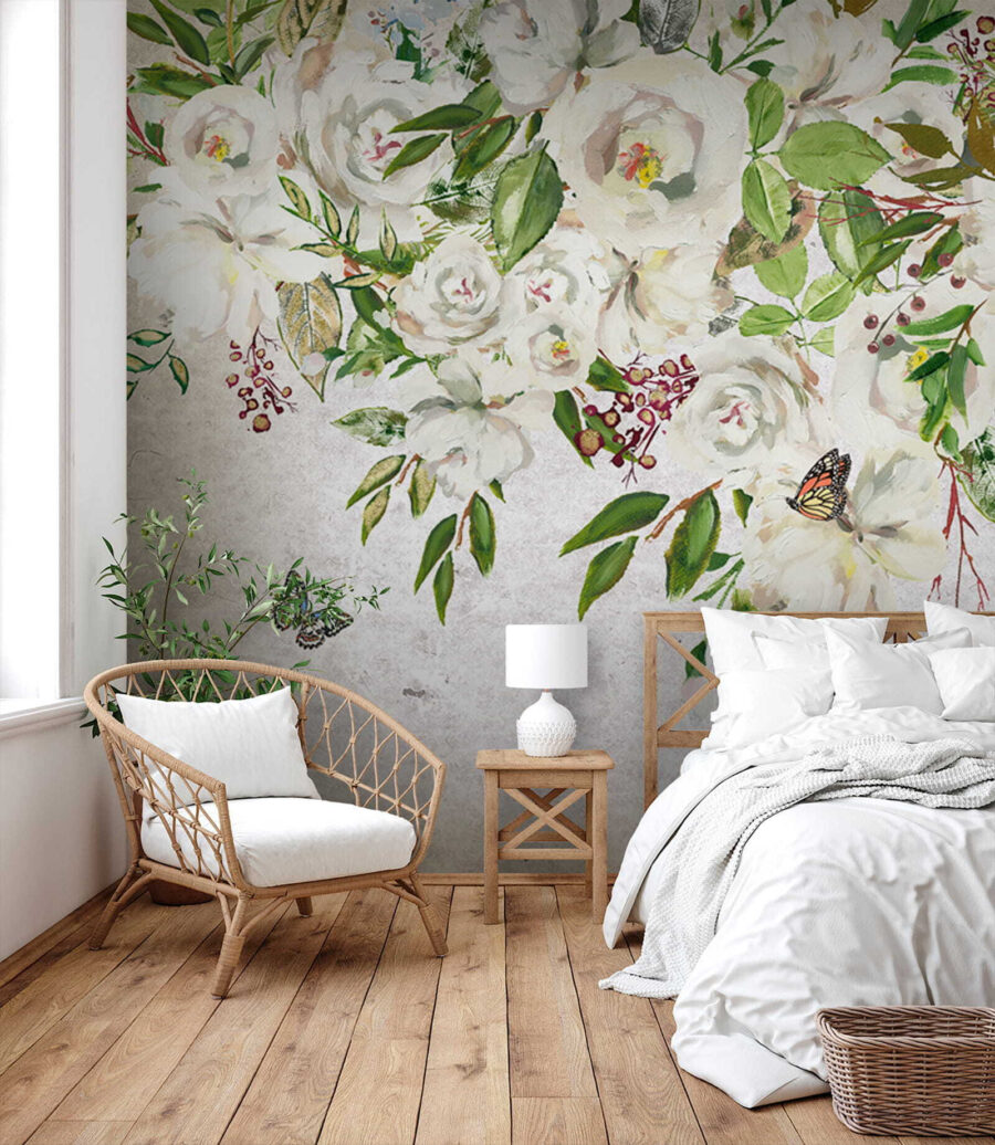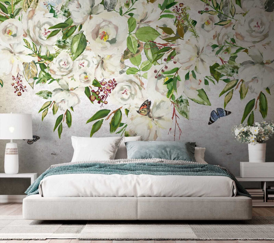 Ταπετσαρίες Ζωγραφική λευκών λουλουδιών και πεταλούδων (Κωδικός προϊόντος: u33223)