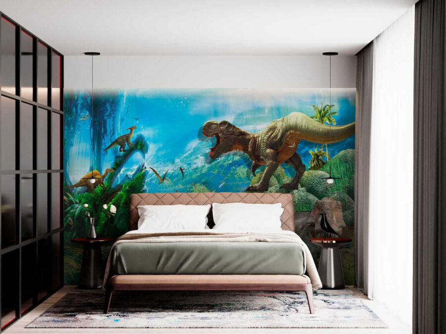 Φανταστείτε να μπαίνετε σε μια προϊστορική χώρα θαυμάτων κάθε φορά που μπαίνετε στο δωμάτιό σας! Αυτή η τοιχογραφία “Δεινόσαυρος με κοφτερά δόντια” είναι μια ζωντανή έκρηξη από το παρελθόν – ιδανική για παιδιά που αγαπούν τα δεινοσαύρια ή για οποιονδήποτε νιώθει βαθιά σύνδεση με αυτά τα υπέροχα πλάσματα. Τα χρώματα ξεπερνούν τα όρια, με πλούσια πράσινα και μπλε του ουρανού που σχεδόν σας κάνουν να ακούτε το θρόισμα της ζούγκλας… ή το βρυχηθμό ενός T. Rex στο βάθος. Είναι σαν το δικό σας Jurassic Park, χωρίς τους κινδύνους! Σοβαρά, η εγκατάσταση αυτής της τοιχογραφίας θα μπορούσε να είναι ακριβώς το εισιτήριο για να πυροδοτήσει τη φαντασία και να προσθέσει κάποια διασκεδαστική, εντυπωσιακή ατμόσφαιρα σε οποιονδήποτε χώρο. Ιδανική για ένα παιδικό υπνοδωμάτιο ή ένα παιχνιδιάρικο καθιστικό, είναι κάτι περισσότερο από απλή διακόσμηση – είναι μια περιπέτεια που περιμένει να συμβεί!