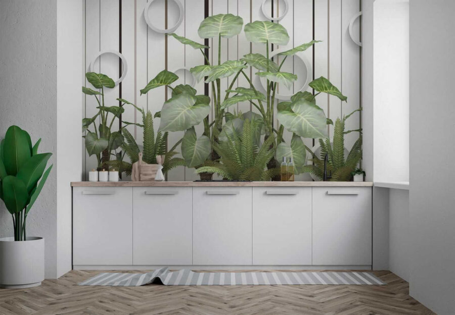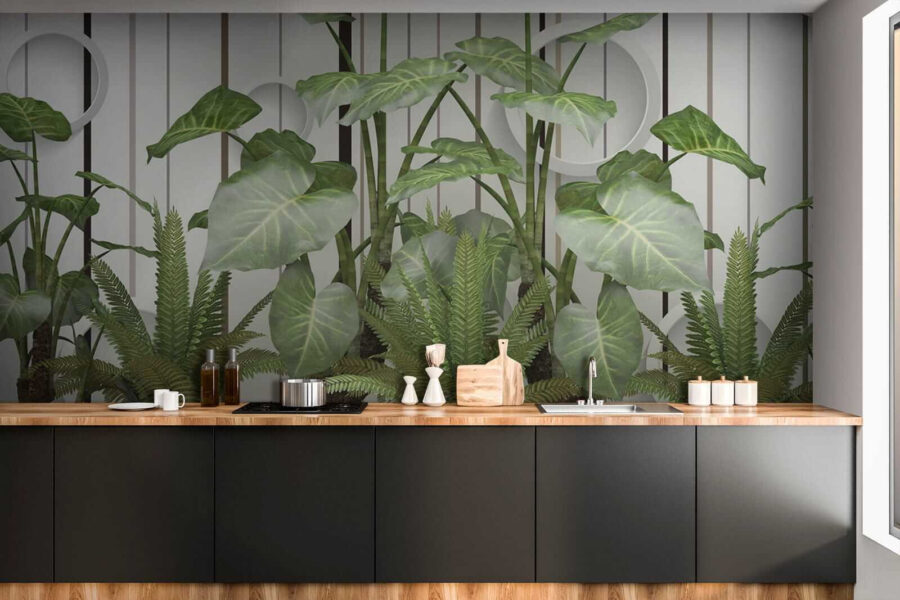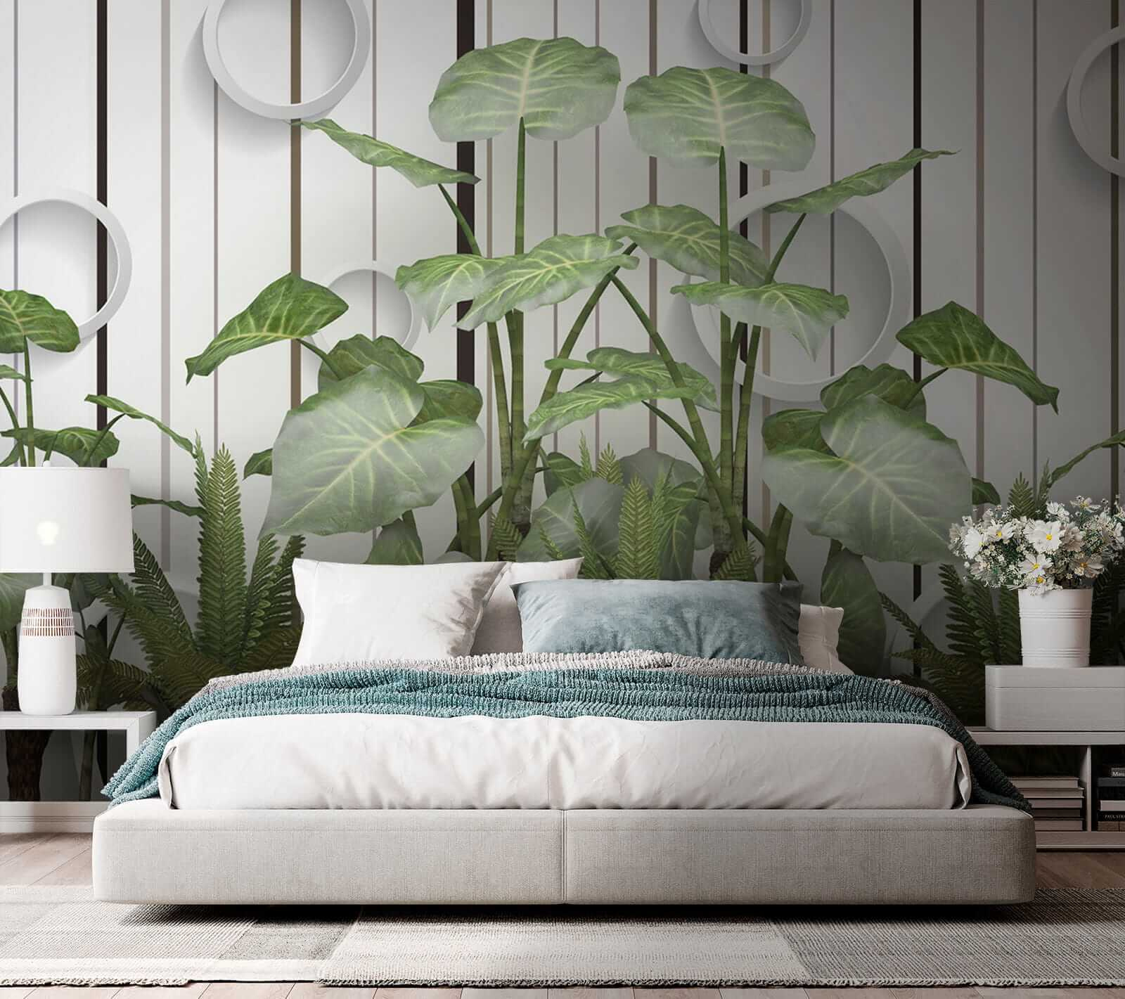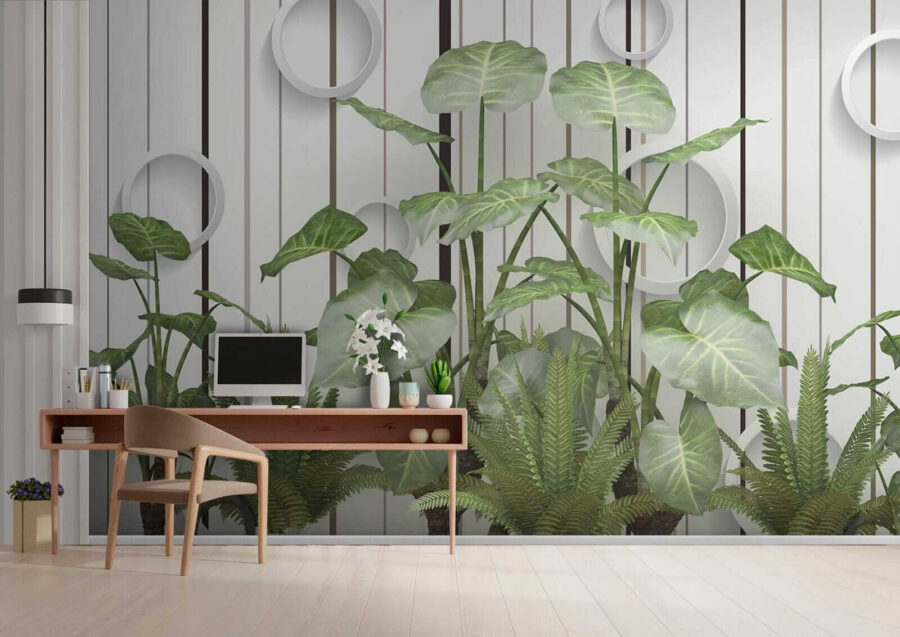 Φανταστείτε αυτό: τοίχοι καλυμμένοι με ζωντανά, πλούσια φύλλα που ξεπροβάλλουν ενάντια σε αυτές τις κομψές ρίγες… σοβαρά, είναι σαν να έχετε ένα άγγιγμα ζούγκλας στο σαλόνι σας χωρίς την υγρασία! Αυτή η τοιχογραφία “Πλούσια φύλλα σε ριγέ τοίχο” συνδυάζει αβίαστα την καταπραϋντική ουσία της φύσης με μια μοντέρνα πινελιά. Είτε είστε λάτρης των φυτών με ελαφρώς μαύρο αντίχειρα είτε απλά επιθυμείτε μια γεύση από την ύπαιθρο, αυτή η τοιχογραφία σας καλύπτει – δεν απαιτείται πότισμα. Φανταστείτε να αράζετε στον καναπέ σας, νιώθοντας αυτή τη φρέσκια, πράσινη αύρα να σας κατακλύζει… απλά ζωντανεύει όλο το δωμάτιο! Επιπλέον, αυτές οι δροσερές κυκλικές πινελιές προσθέτουν μια ιδιόμορφη, τρισδιάστατη ατμόσφαιρα – μιλάμε για εντυπωσιακό μάτι. Είναι ιδανικό για να προσδώσετε λίγη γοητεία και γαλήνη σε κάθε χώρο. Δεν είναι απλώς μια τοιχογραφία τοίχου, είναι έναυσμα για συζήτηση, μια τόνωση της διάθεσης, ένα μικρό κομμάτι του φυλλώδους παραδείσου. 🌿