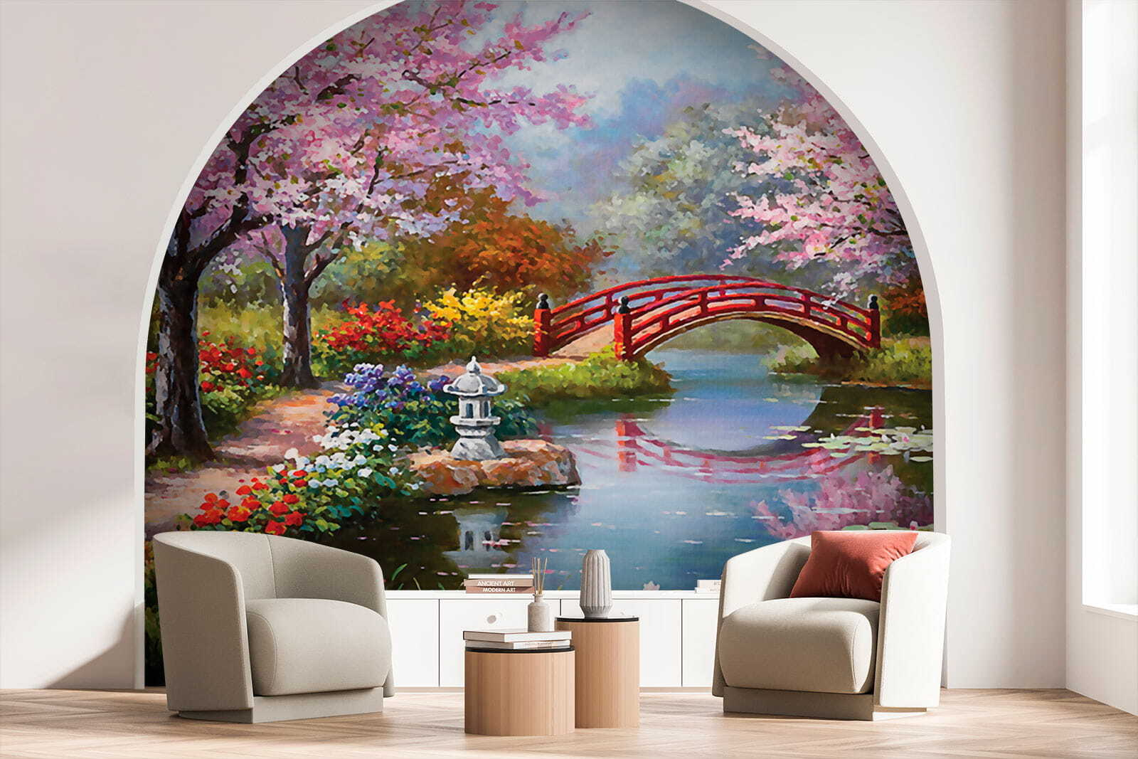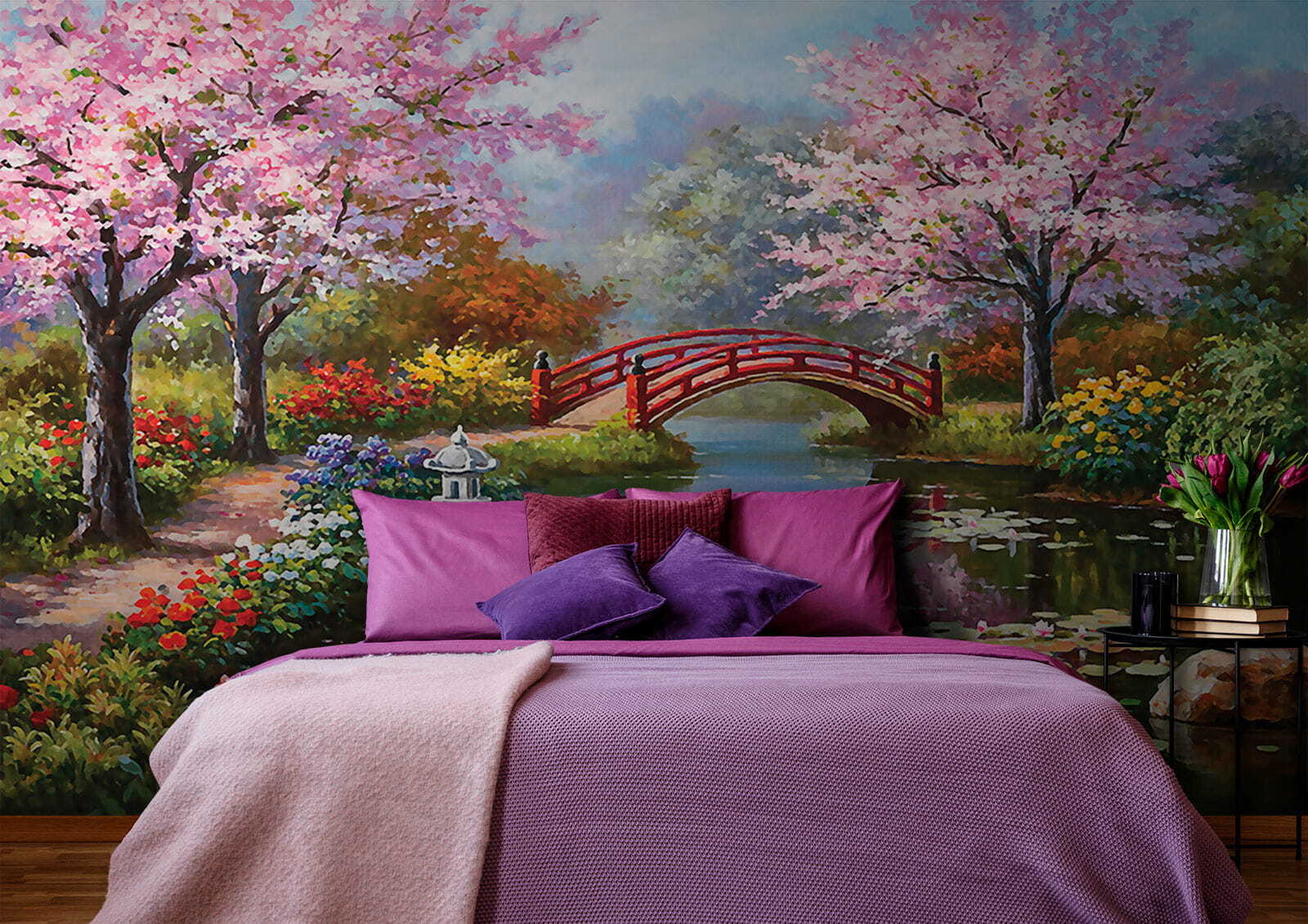 Φανταστείτε να μπαίνετε στο δικό σας ήσυχο καταφύγιο κάθε μέρα! Η τοιχογραφία “Γαλήνιος κήπος με ροζ άνθη” μετατρέπει κάθε τοίχο σε ένα κομμάτι ιαπωνικού παραδείσου. Μια βουτιά από ροζ άνθη, μια γοητευτική κόκκινη γέφυρα – είναι σαν μια σκηνή βγαλμένη από ονειρική υδατογραφία. Και οι αντανακλάσεις… τόσο ηρεμιστικές! Ιδανικό για παιδικά δωμάτια, χώρους καθιστικού ή για οποιοδήποτε μέρος που χρειάζεται ένα άγγιγμα απαλής ζεν. Απλά σκεφτείτε το – κάθε πρωί, ξυπνώντας σε αυτόν τον γαλήνιο κήπο, το άρωμα των λουλουδιών σχεδόν απτό, τα πουλιά κελαηδούν απαλά. Θα νιώθετε σαν να έχετε αποδράσει σε έναν μυστικό κήπο! Πίστεψέ με, αυτή η τοιχογραφία δεν έχει να κάνει μόνο με την εικόνα – έχει να κάνει με το να νιώθεις ήρεμος, χαρούμενος και λίγο ιδιόρρυθμος! Επιπλέον, είναι μια δημοφιλής επιλογή μεταξύ των φυσιολατρών και των λάτρεις της διακόσμησης. Ένα μικρό κομμάτι γαλήνης ακριβώς στον τοίχο σας.